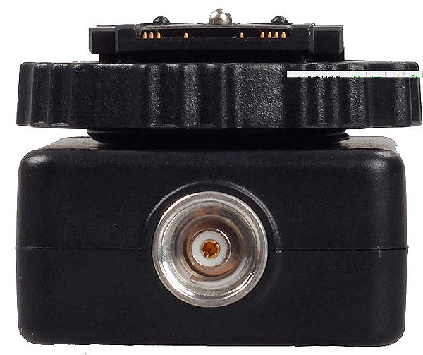 Также оснащен PC синхро-разъемом, который позволяет с помощью синхрокабеля получить с камеры сигнал для одключения к студийным вспышкам, радиосинхронизаторам и т.д. Используется на камерах, у которых нет PC-разъема.