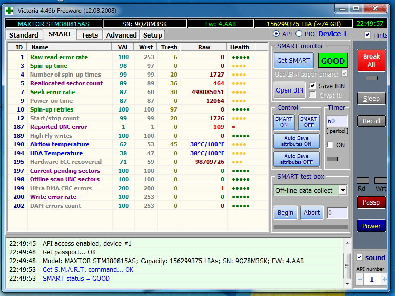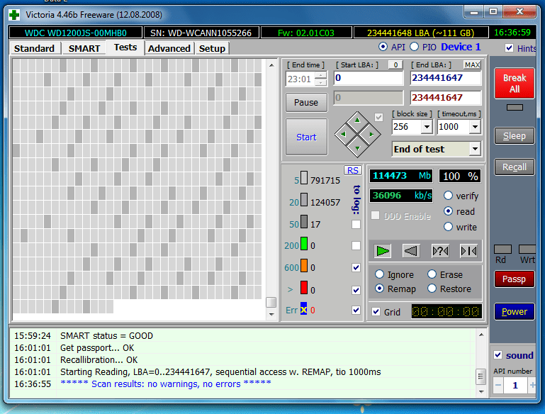 @leman, я из под винды проверяю, это ничего ? Вот два СМАРТа и сейчас тест поверхности проходят ну так как с обменом ? ещё 2 смарта и теста поверхности