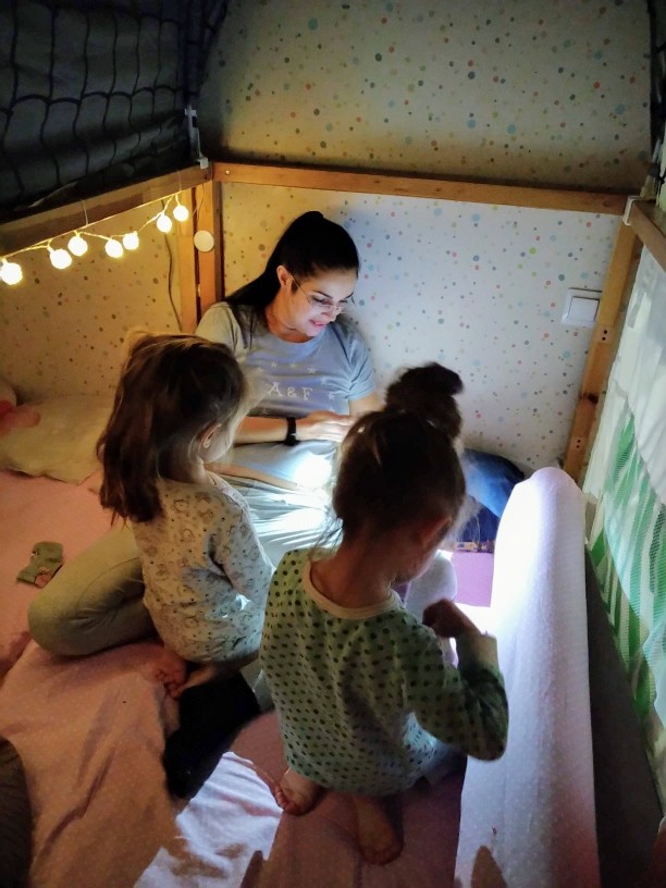 у нас время засыпания у детей разное. А у родителей вообще другое Посему плохо это представляю. Не будут же они до 12 ночи бодрствовать, чтоб засыпать с родителями. А если родителям засыпать с детьми, то блин так можно ведь и заснуть самому. Постоянные недосыпы дело такое)) А вечером еще дел куча.