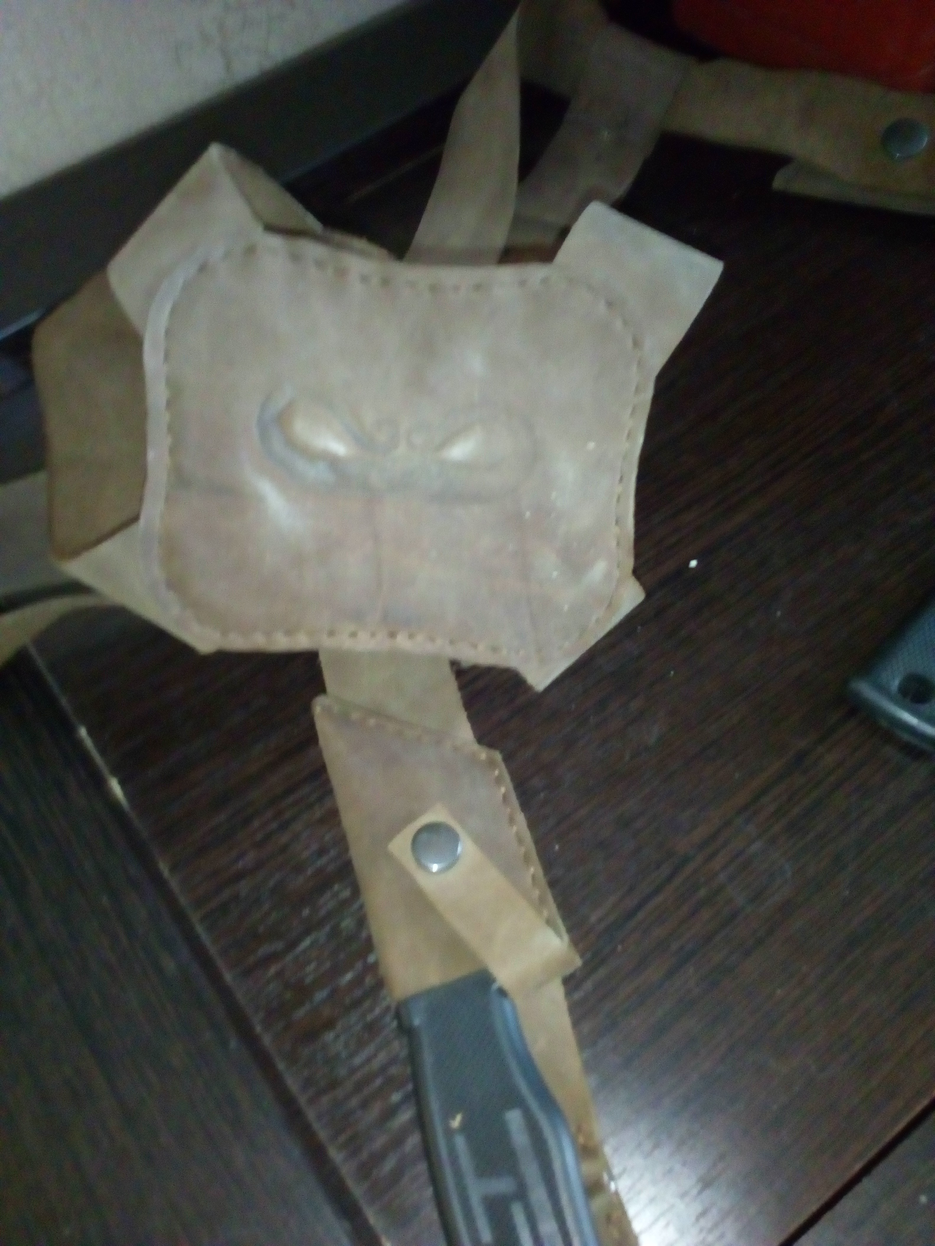 Продам кожанную сбрую с двумя ножами для монтажников линолеумных полов. Натуральная кожа, подгонка по росту размерам, ножны с ножами отстегиваются. Два инструмента для резки линолеума в комплекте. Также можно распускать ковролин, резать картон, точить карандаши. Налетайте, заточчики карандашей и вкрыватели картонных коробок. Цена 1600, торг, обмен.