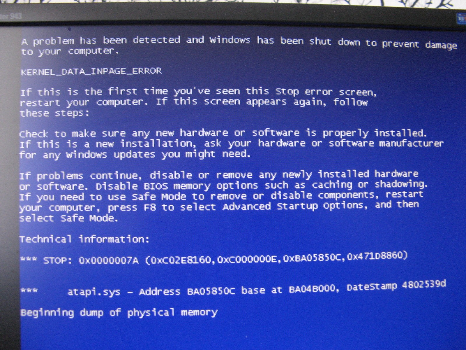 ATAPI.SYS - Как исправить ошибку "синий экран" (BSOD)