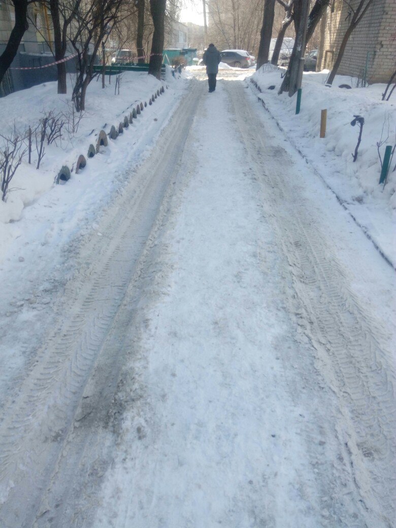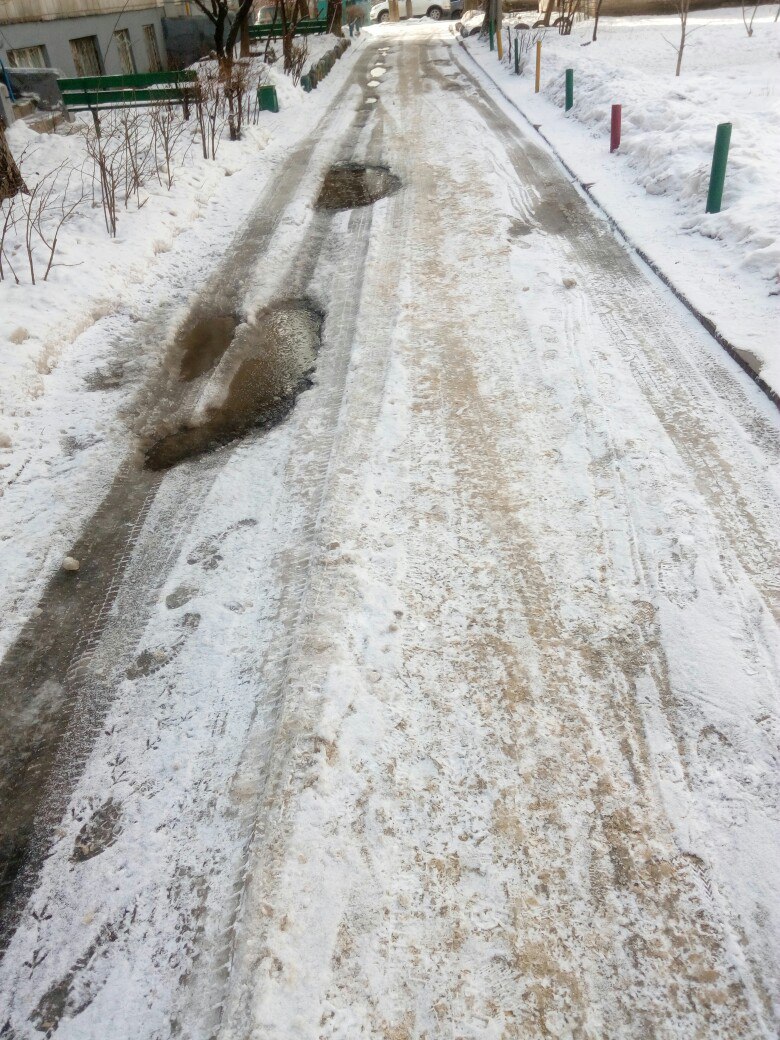 В первых числах марта написал в муниципальную жилищную инспекцию жалобу на неудовлетворительную уборку двора: пару месяцев как дворник появляется на 30 мин утром иногда, чуть посыпет и все. Правда пару раз приходил трактор, но сбил только верхний слой снега. Вчера дворников 12 работало, но сумели сбить лед только у входов в подъезды. Сегодня приходила ко мне комиссия: девушка из инспекции, мастер участка, главный инженер и еще кто-то из УК. Типо я один жалуюсь, "снег и лед приносят машины с дороги", "дворник каждый день работает в поте лица", "ваш дворник самый лучший", "во дворе мало солнца", "разве песком он не посыпает?" И таком русле, мол, чего клевещу на них И девочка с инспекции не смогла найти пешеходную дорожку, о которой я писал)) Все из УК в один голос доказывали, что ее там НЕТ!!!))) Ну конечно, за слоем льда и снега ее не найдешь) Но убедил их, что она там присутствует. Про девочку из инспекции, как будто первый раз пришла на проверку, спрашивает мастера: "Вы сегодня очистите лед до вечера?" - Нет (Конечно нет, там он десятки см, только весны ждать, пока расстает) Ну и, разумеется, мои доводы почти не слушала, только то, что втирали ей из УК. Фотографии февраля, начала марта и сегодняшнего дня (когда "нашли" пешеходную дорожку), по ним можно увидеть ежедневную работу лучшего дворника города UPD В моем случае обращение в инспекцию помогло: высыпали мешок (в буквальном смысле) соли, пригнали трактор и работает больше 10 дворников Вечером