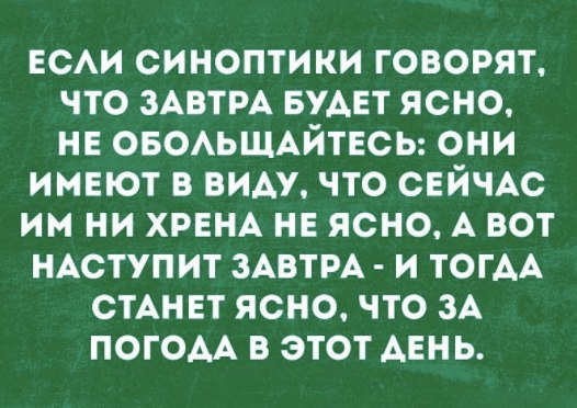 тогда за что платят деньги метеорологам? Может, их стоит тогда разогнать? Это ж сколько рук рабочих освободится!