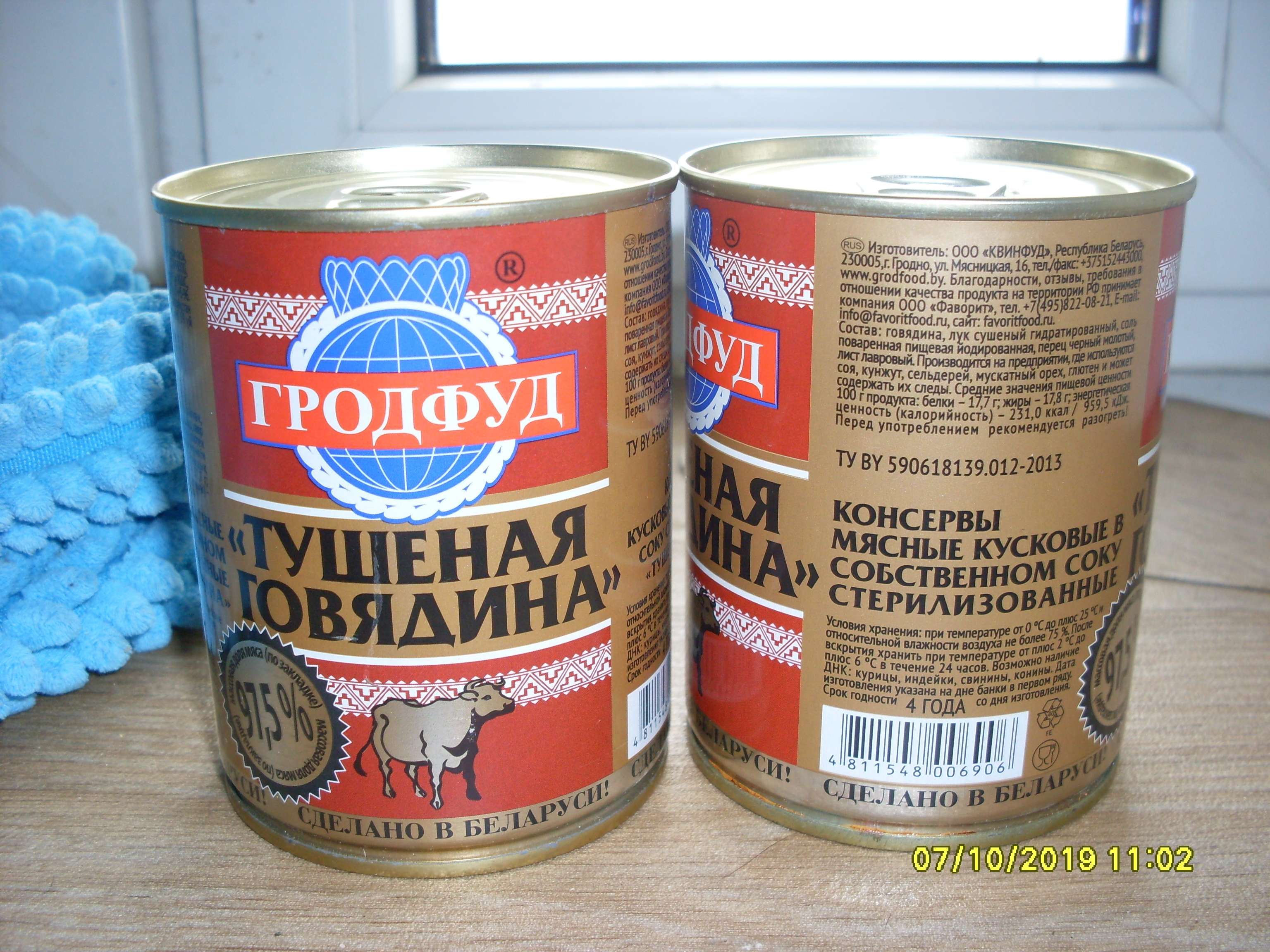 Сегодня купил две тушенки. Свиную за 199. А говяжую за 299. Открыл обе. Там розовенькое мясо и много желе. Лавровый лист поперек банки. Тушенка вкусная, но почему такая дорогая? Мясо на рынке дешевле покупать. Прилагаются фото: И почему говяжая тушенка дороже свиной?