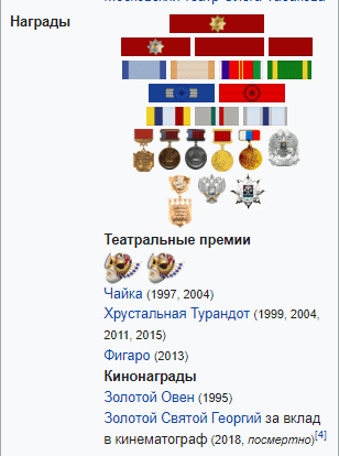А вот никакущий актёр, какие-то Ордена Славы, какие-то медали За отвагу и ни одной самой завалящей премии
