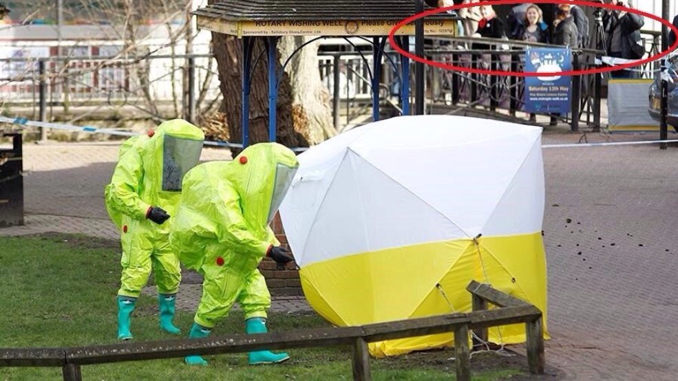 Обожаю британских придурков Они уже освоили постановки в стиле белых касок. Оцените фото с места применения «новичка» — на нем два зеленых клоуна в скафандрах высшей биозащиты, с замкнутым циклом. Еще два белых клоуна просто в ОЗК и респираторах. И три английских пожарника просто в касках, с тупыми рожами. А чо им будет — они же за бело-синей ленточкой стоят.