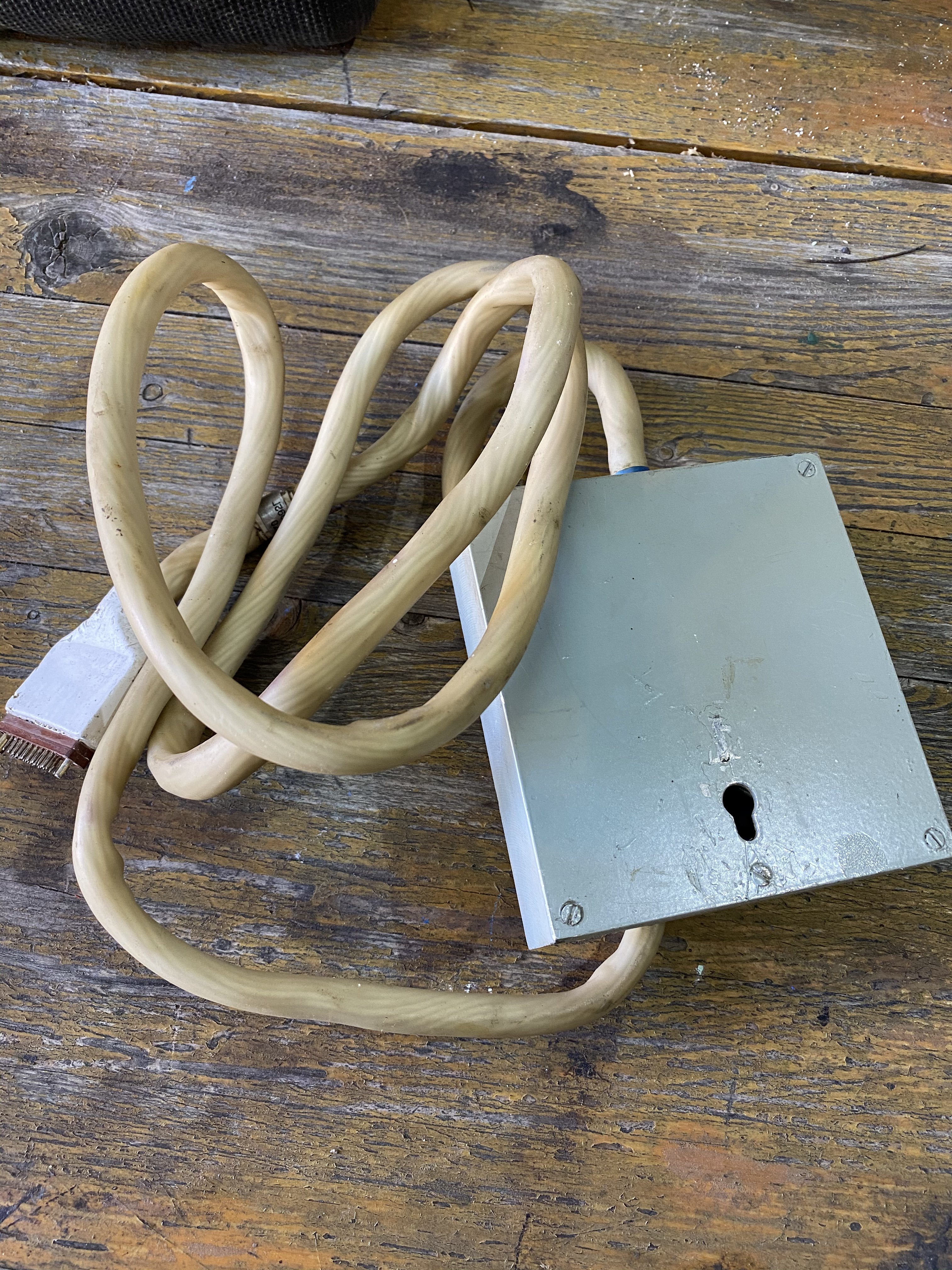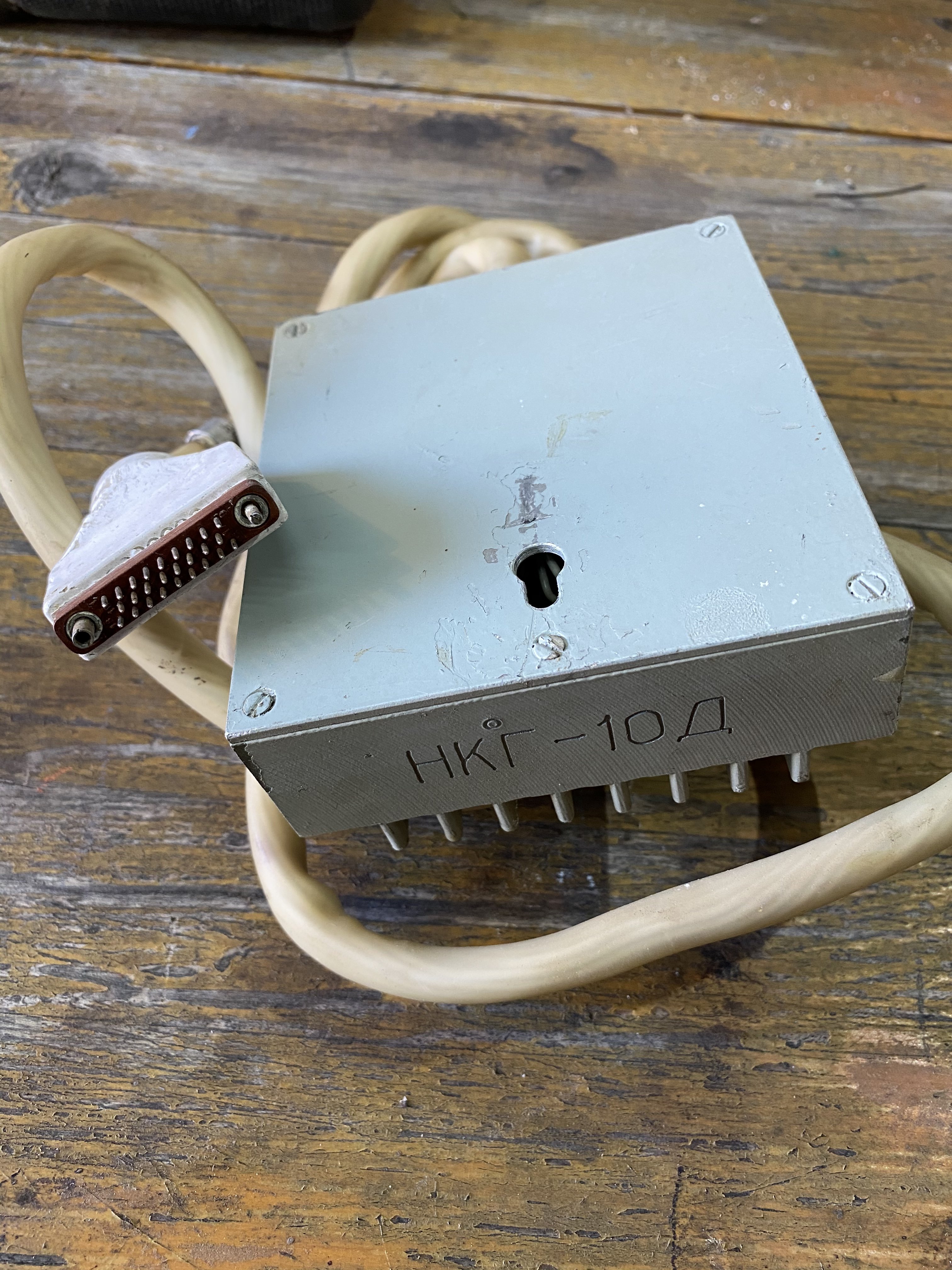Хм, куча адовых резисторов охлаждаются. И все разного сопротивления. Какая-то нагрузка, а для чего хз. Может, часть какого-то испытательного разрядного стенда для сортировки никель-кадмиевых элементов по ёмкости? Кабель втыкали в стенд, а ящик куда-нить в форточку вешали)