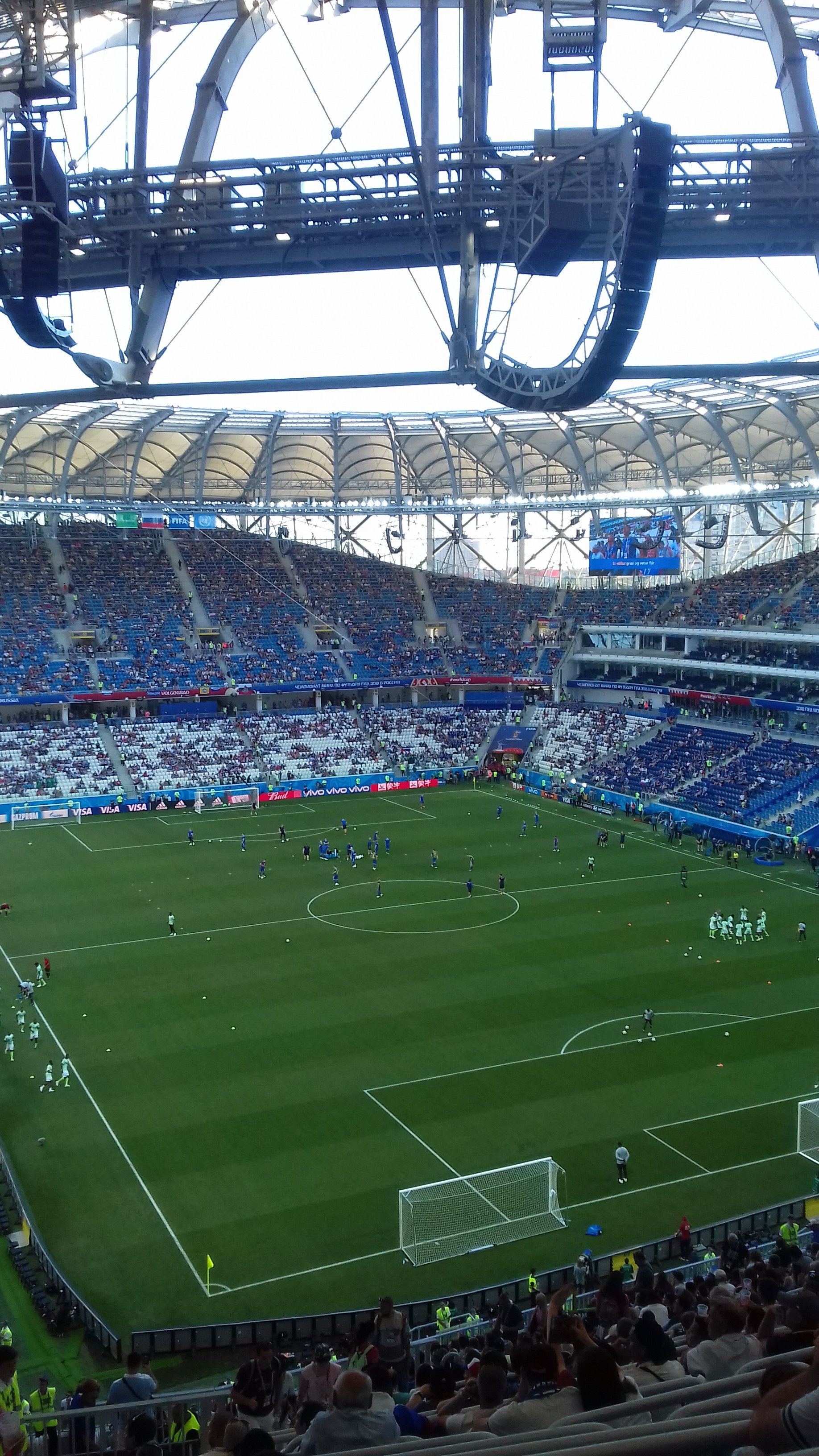 Привет с д110, третий ряд за воротами. Сейчас буду за нигерийским вратарем, надеюсь, увижу мяч в сетке!!! обзор, конечно, не так хорош отсюда, зато когда идет рядрм борьба, все пря возле тебя, очуменно