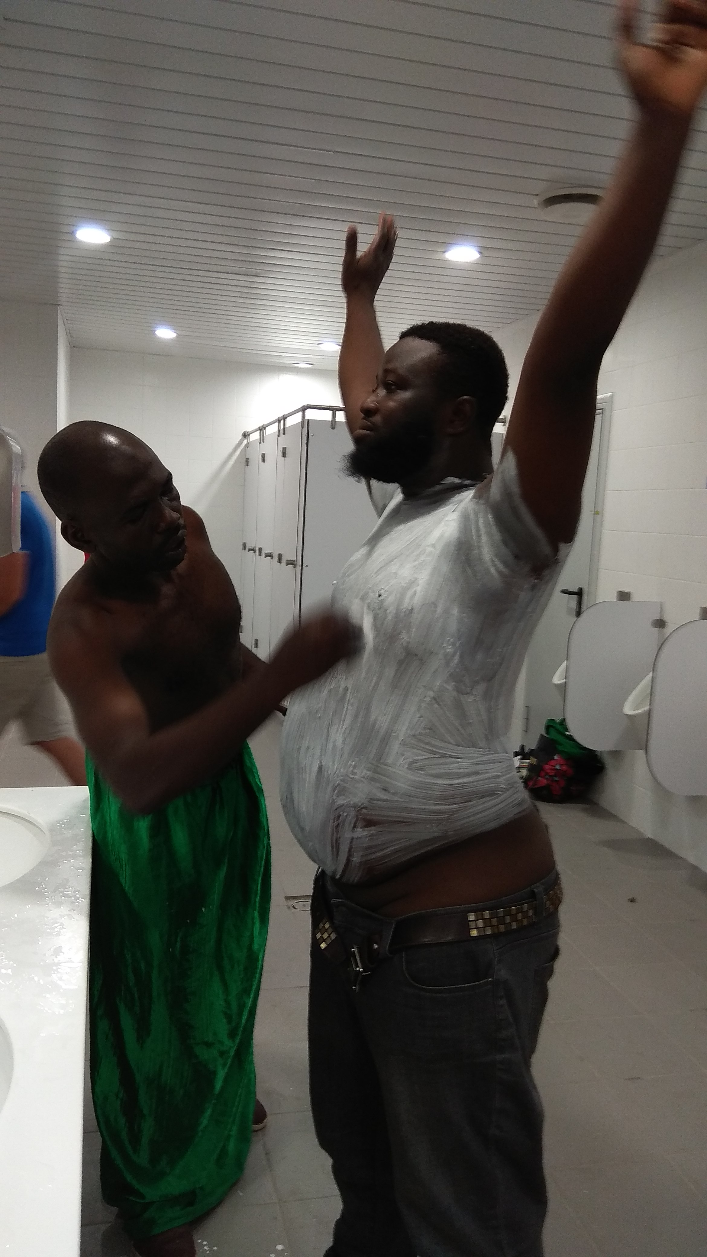 Болеем за наших. Я с гл.тренером исландцев. Зашёл в туалет а там эти как их ,нигерийцы.Купаются что ли . Трутся до бела.