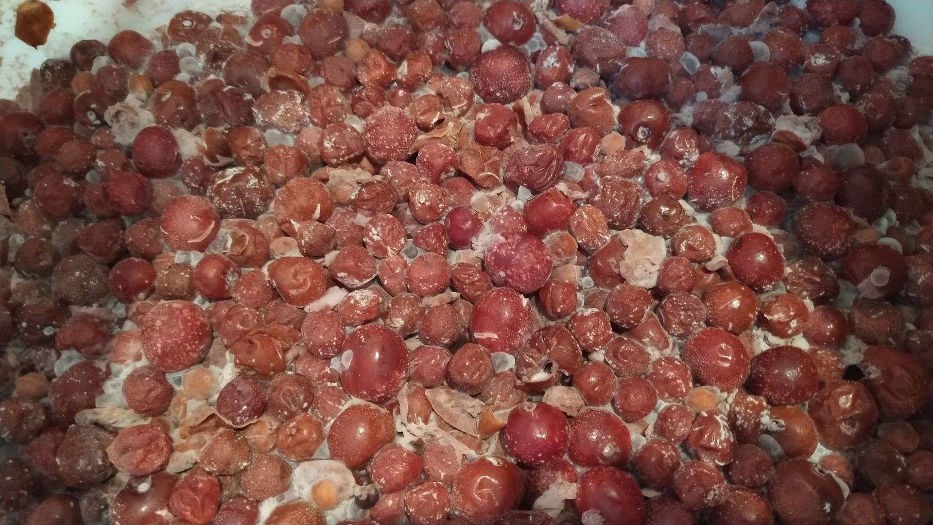 @PDV, @Вольффф, @ksa, комрады, вот эта хрень белёсая сверху - это плесень или нет? Всё, песта винищу чтоль?! Если снять с мезги (как раз сегодня и собирался), сок получившийся прокипятить, остудить, а потом в бутЫлях под перчатку и засыпать винных дрожжей? Или уже нет смысла заморачиваться и тратить деньги/время?