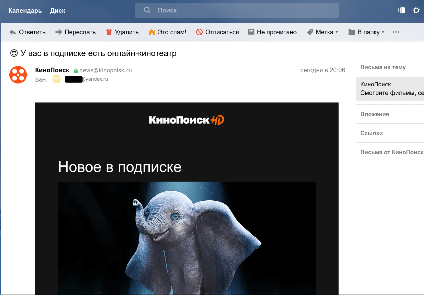Малаццы, чо. А вот еще из свеженького — теперь на ошибку HTTP 404 (страница не найдена) какая-то патефонская сволочь придумала перехватывать трафик и совать пользователю свой поганый спам. Эта подлость теперь не дает увидеть оригинальную страницу «404» сайта — где, на минуточку, могут быть полезные ссылки, включая релевантные предложения. Одно хорошо — пока что ***** не может вломиться в шифрованный трафик сайтов, работающих по протоколу HTTPS. Пока что. Оп-с! Пришло письмо (email) с угрожающим содержимым: Шо это? Тут же проверился на «секретном» сайте патефона http://moy-m-portal.ru/moi_podpiski/#!/subscription/search — впаренных подписок якобы нет. Проверить списания в личном кабинете нет возможности за его отсутствием (непубличный тариф, там целый геморрой с получением ЛК).