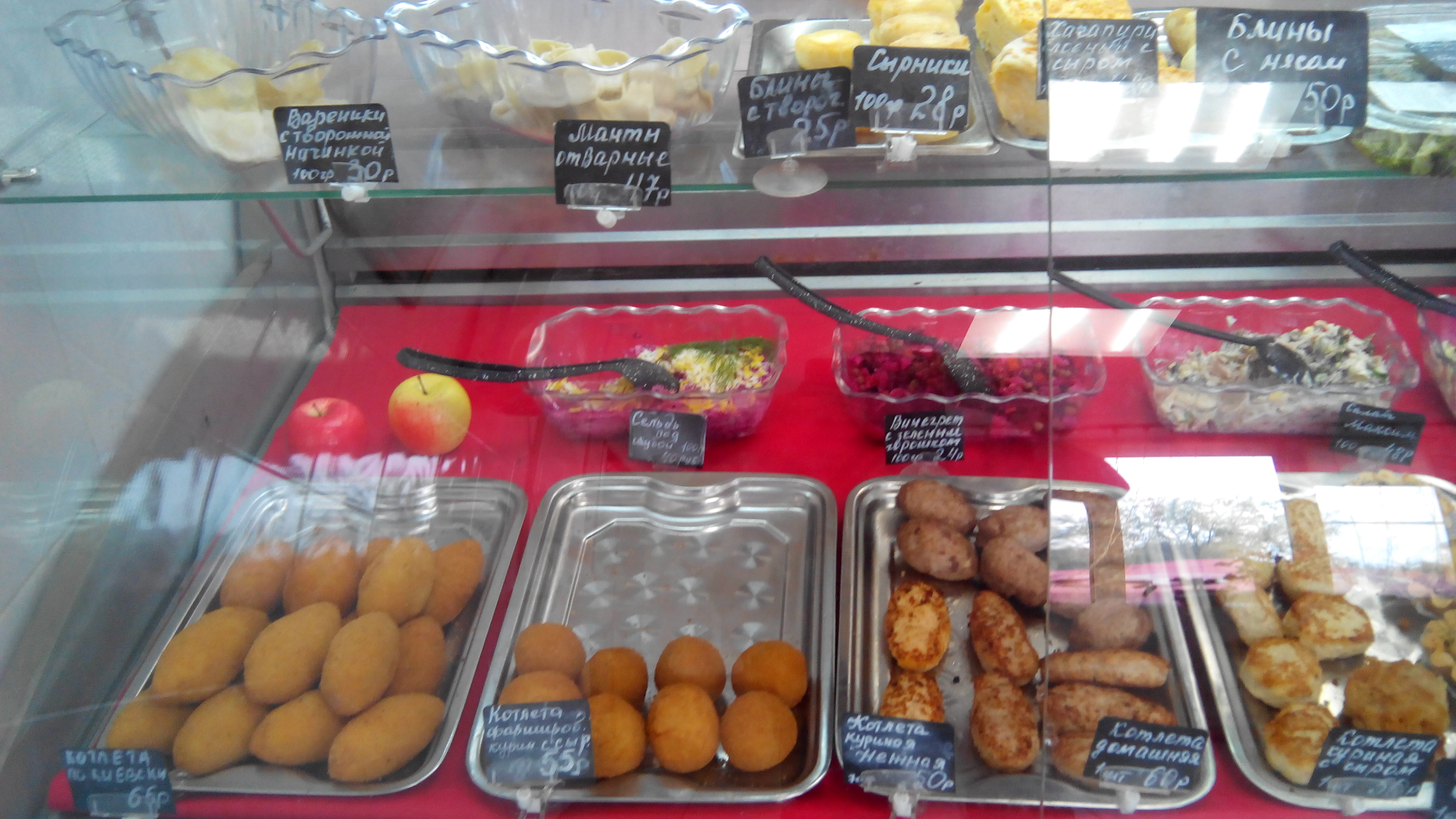 нормальная кулинария на Тракторном если повезет, можно отхватить суперские котлеты: вместо теста-обертки - картошечка, типа драников