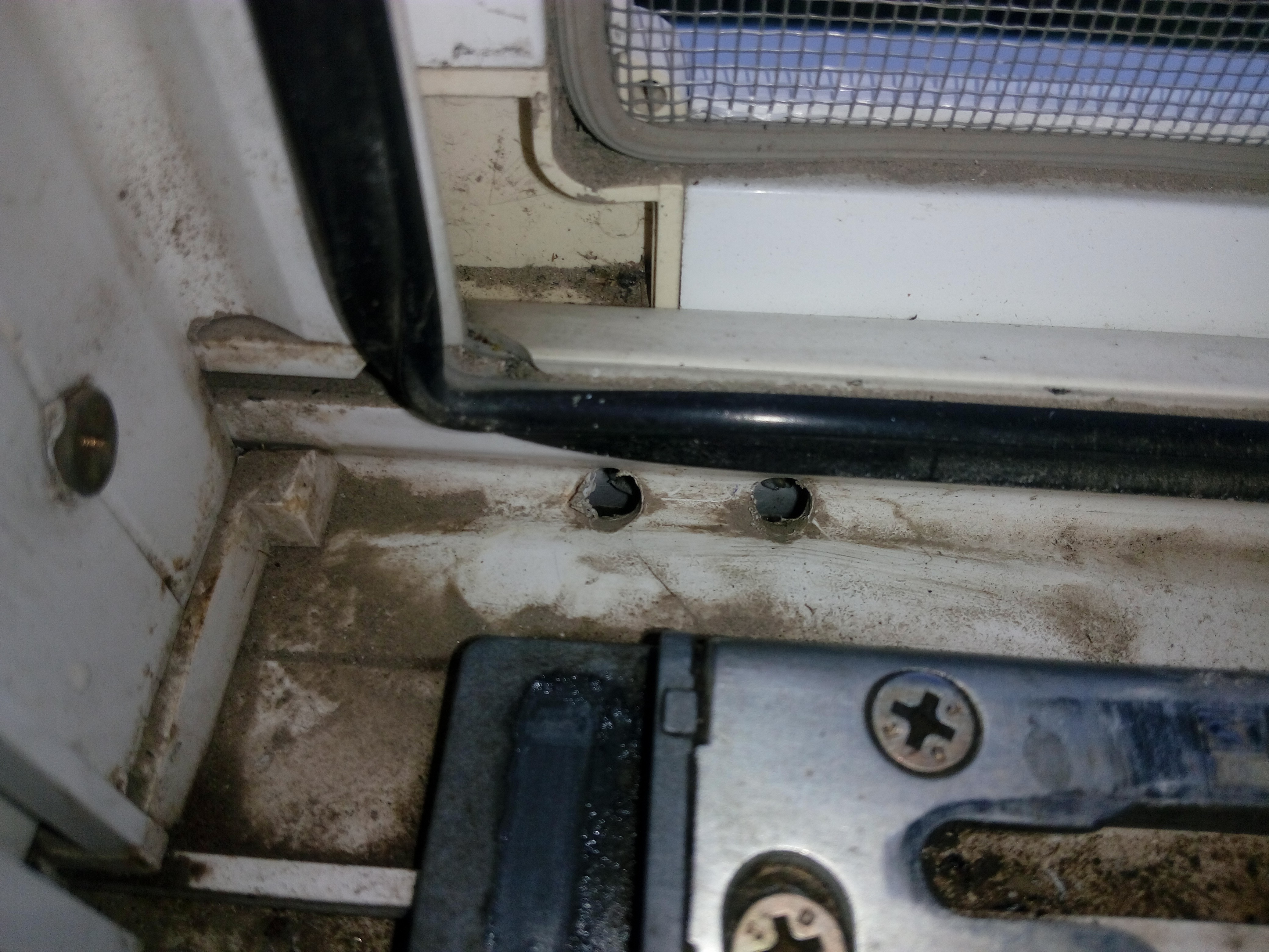 @IceCube, откройте створку и сфоткайте раму. Чтобы было видно полость рамы. Вот так примерно: Есть там какие-нибудь отверстия?