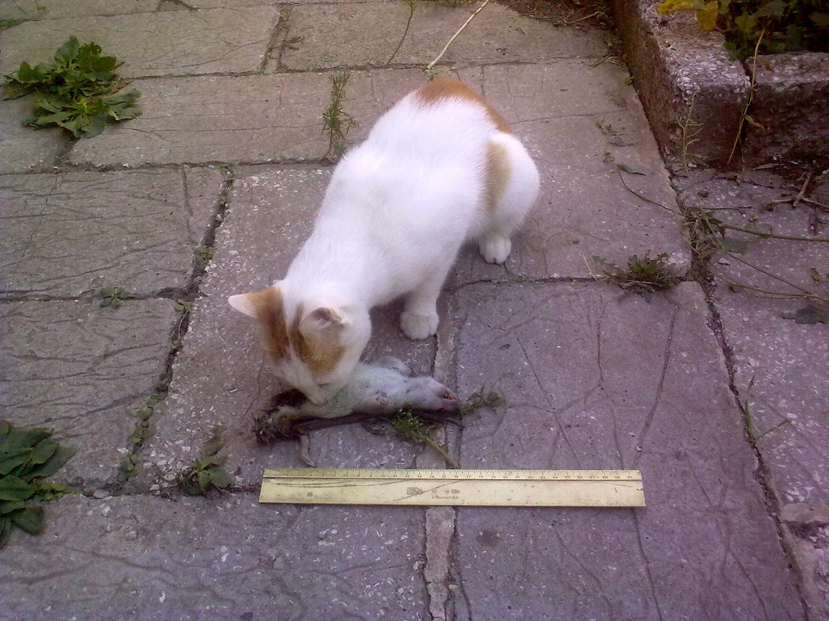 Вот это: Это какой-то миф. У меня был кот, ловивший крыс уже подростком. Это первая, но далеко не единственная.