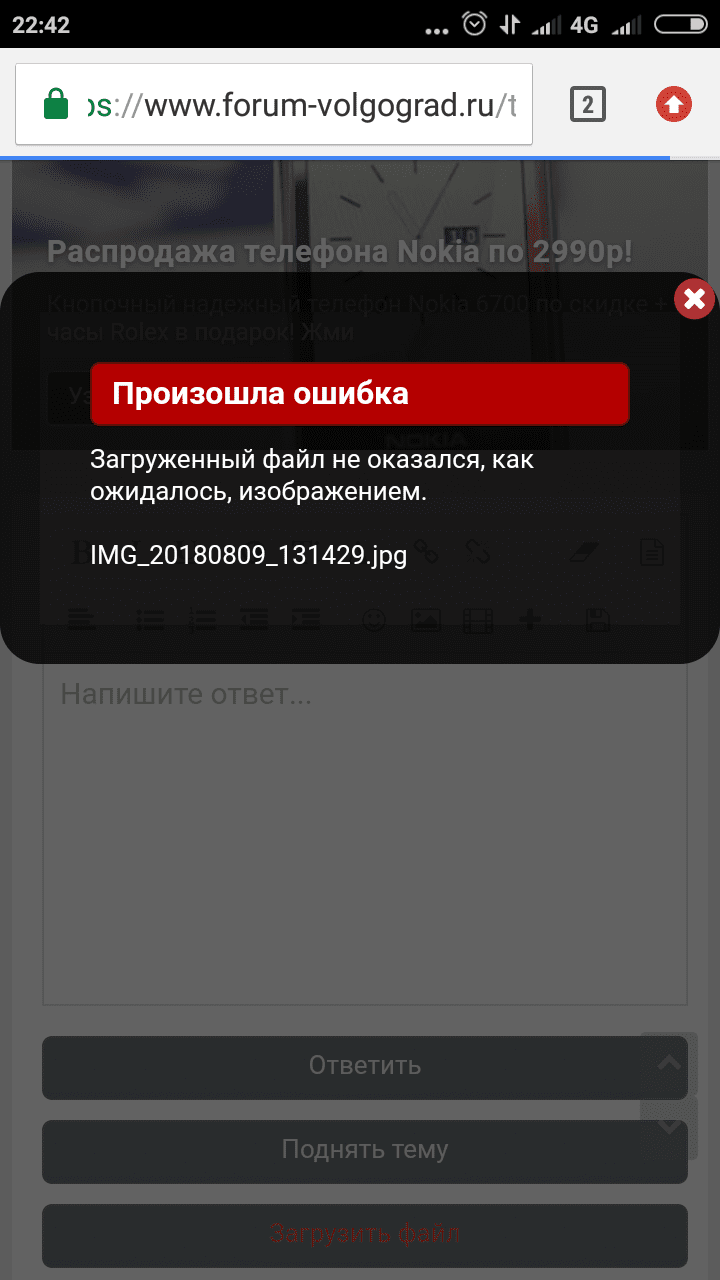 Приветствую! Проблема с загрузкой изображений, в частности, сюда на форум. Смартфон Xiaomi redmi 4x. При загрузке тут пишет "загруженный файл оказался не изображением" Помогите, а))