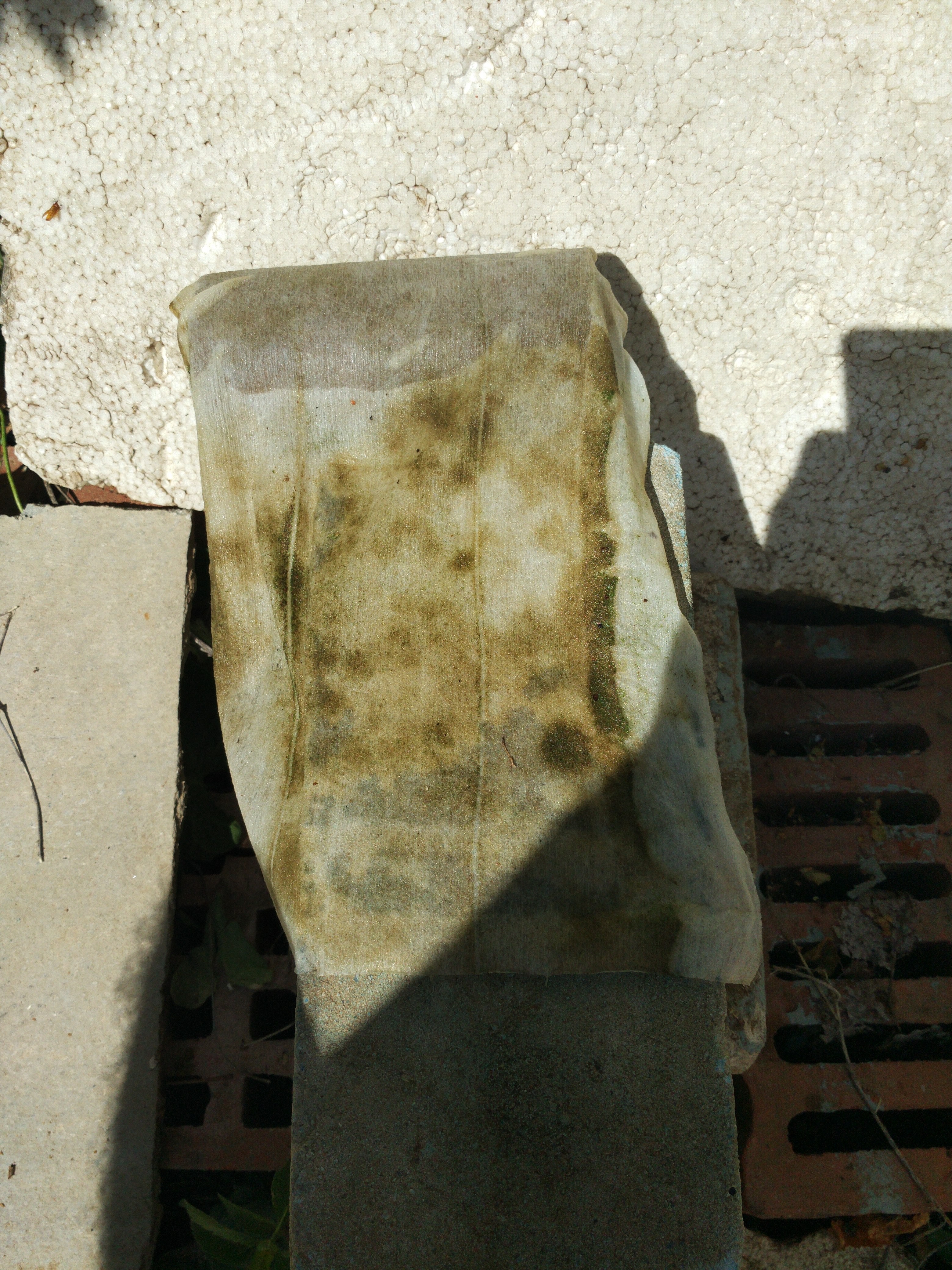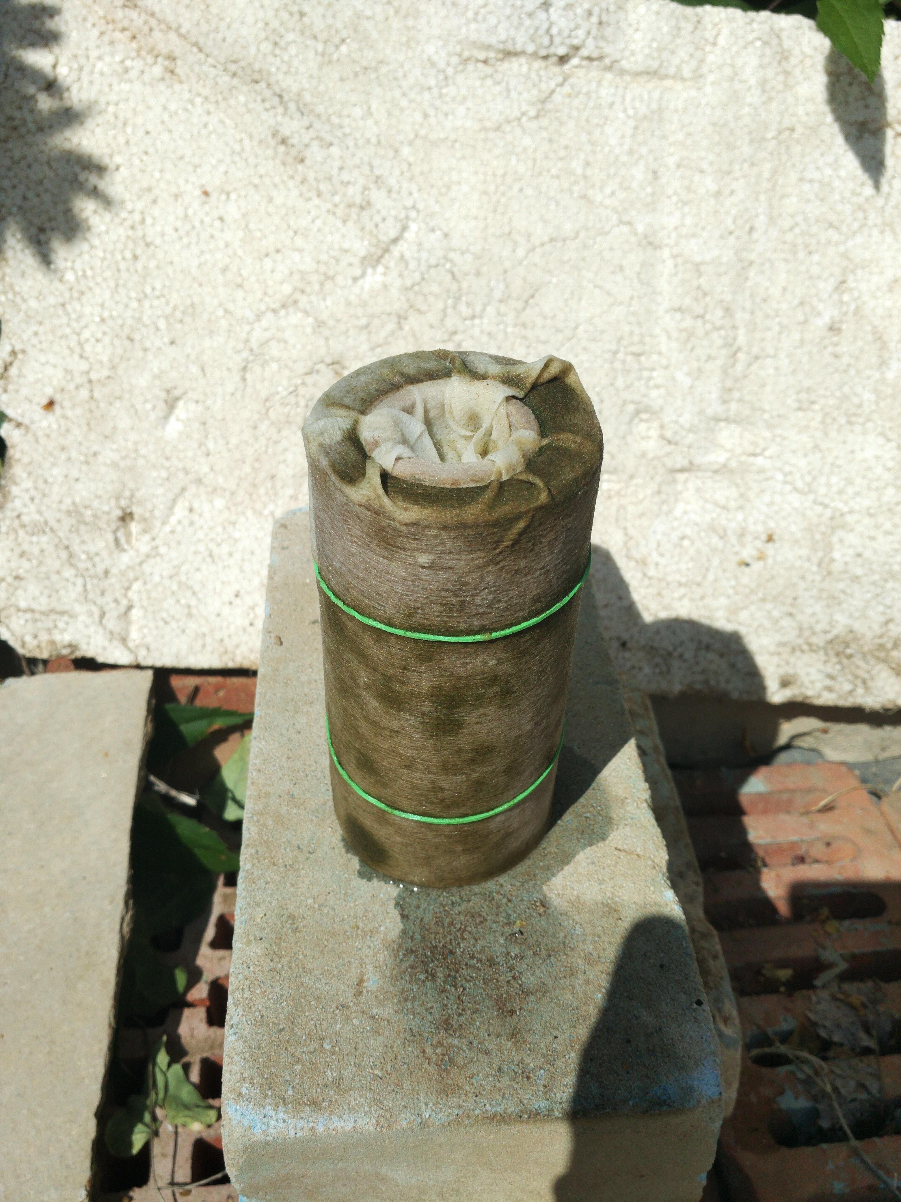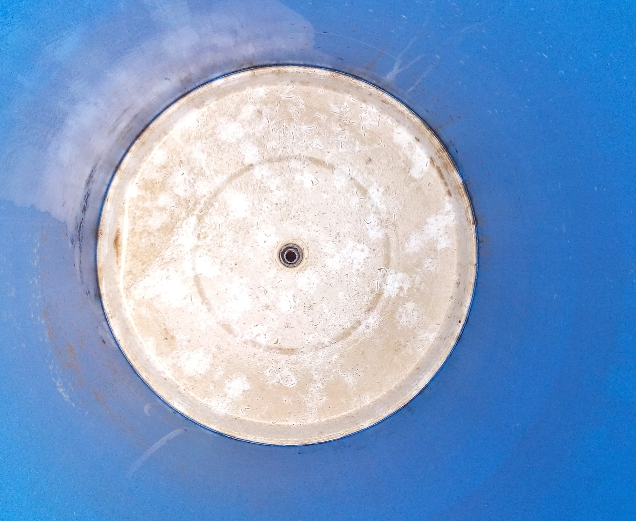 Она заливается под контролем до перелива (не вижу проблемы, т.к. когда идут дожди, воды на крышу попадает намного больше), а потом бочка закрывается, и пользуемся холодной водой из центрального водопровода (через фильтр) до момента, пока воду там не отключат. Нет "автоматики" - но мне так проще. Напор, конечно, отличается - тогда есть неудобства только при купании днем в момент, когда холодная вода идет из водопровода (приходится дольше регулировать смеситель). Больше никаких проблем нет, обратного потока нет. Этот сезон 7-й по счету, когда мы пользуемся этим водонагревателем. За это время только два раза меняли смеситель на раковине (один из них просто брался за 300 руб. на один сезон), один раз смеситель у душа, клапан между фильтром и хоз.блоком и фильтр, т.к. однажды осенью в октябре были сильные морозы, которые не ждали, и они разрушили всё перечисленное. Колбу фильтра после этого я теперь снимаю всегда, когда уезжаем с дачи, а осенью за погодой слежу на неделю вперед. Водонагреватель не разбирал ни разу. На зиму только спуск воды, как описано на схеме. Мы не любим купаться в "болоте"... Вот то, что образуется на стенках и дне бочки за две недели после её помывки, если нет фильтра и не пользоваться никакой химией (фото сделаны давно, конечно, но белая ткань, обматывающая картридж фильтра, за сутки становится в зависимости от разных дней от буро-коричневой до зеленой):