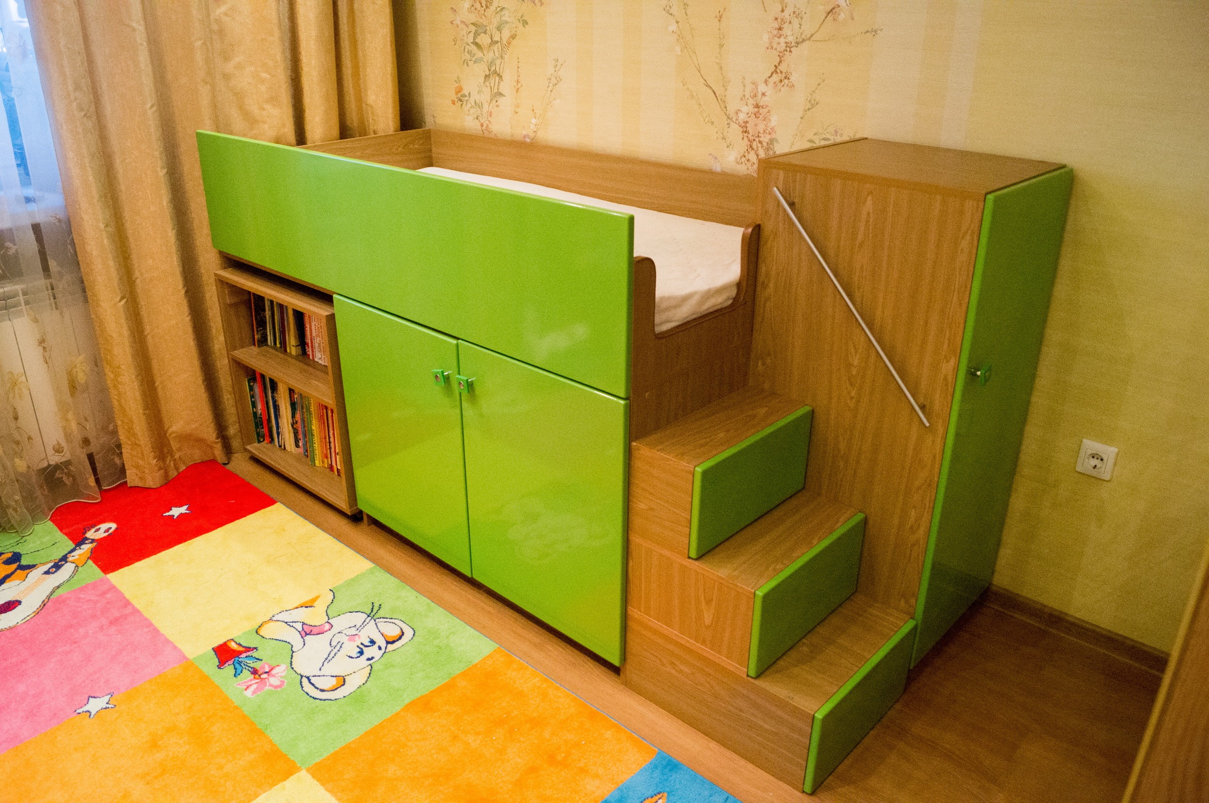 Продается детский уголок Б/У. Делали на заказ для маленькой комнаты. Материал - ЛДСП. Фасады - МДФ. Состояние отличное. Размеры - 215 см х 105см х 86 см. Общая длина со шкафчиком - 215 см. Размер шкафчика 45 см х 45 см х 111 см. Под спальным местом выдвижной письменный стол и шкаф для игрушек. В комплекте ортопедический матрас: Meddyflex Kids Happy 160х80. Цена: 15 000 р.