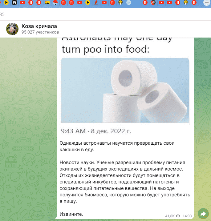 Говорят, пиндосы на МКС отказались пить воду, восстановленную из мочи, и их пришлось срочно эвакуировать, дабы не засохли. А вроде инклюзивные трансгендерные либералы.