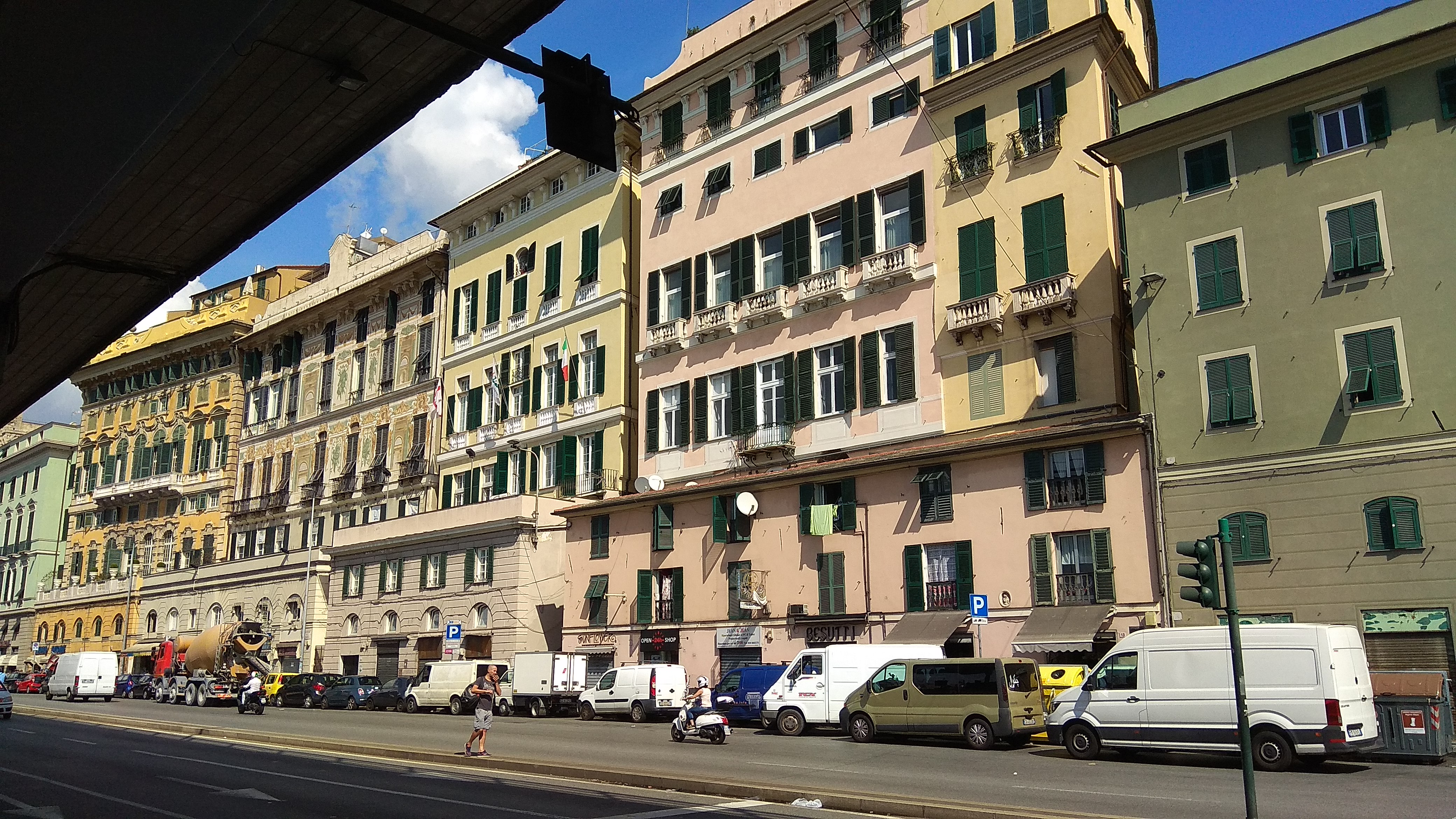 ЁПРСТ-чуть не проспали. Благо сосед из ВЛГ ответил по вайберу в 7 утра по Москве- телефон пропикал и мы вскочили . Через час с лишним поезд ! Бегом умылись позавтракали- нас уже ждал термосок с бутербродами и чаем (спасибо Сереге и Марине ) и бегом на метро. В общем вокзал огромный-пока туда-сюда-пока билеты прочекили на перроне - в общем сели в поезд за 5 минут до отправления Поехали. Скорость 160 км. На такой скорости попутно еще какой то скоростной поезд мчался с такой скоростью что я и разглядеть его нормально не успел. Приехали. Ну что сказать -красотища -впрочем как вся Италия. Гуляем- наслаждаемся городом. Жарко-около 30 . Море вот оно а искупаться негде. Говорят надо проехать несколько остановок на автобусе. купили по 1.5 евро билеты на все виды транспорта действующие 90 минут. Сели на фуникулер прокатиться в старый город
