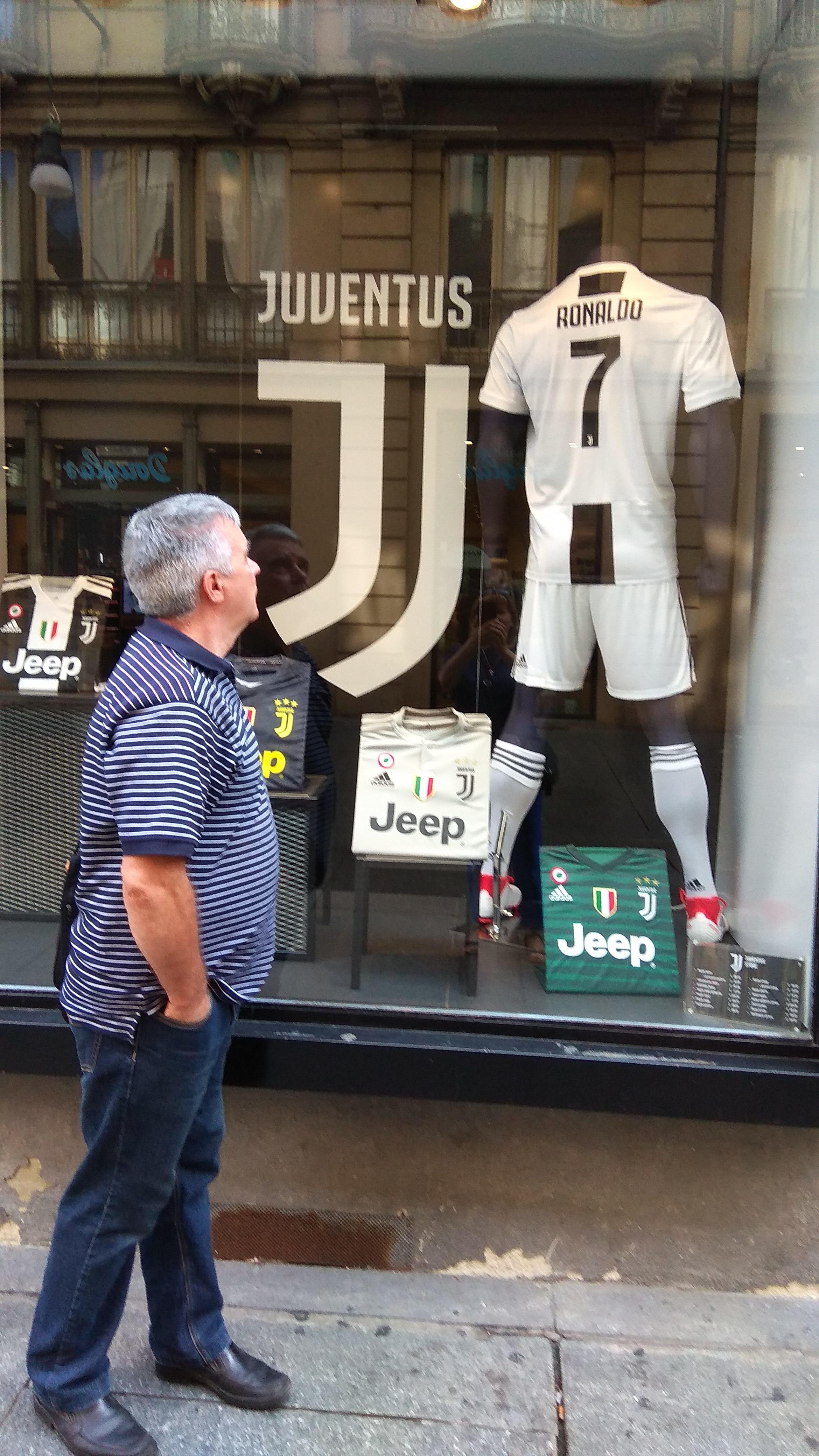 Роналдо теперь в Турине-кругом продается атрибутика и футболки