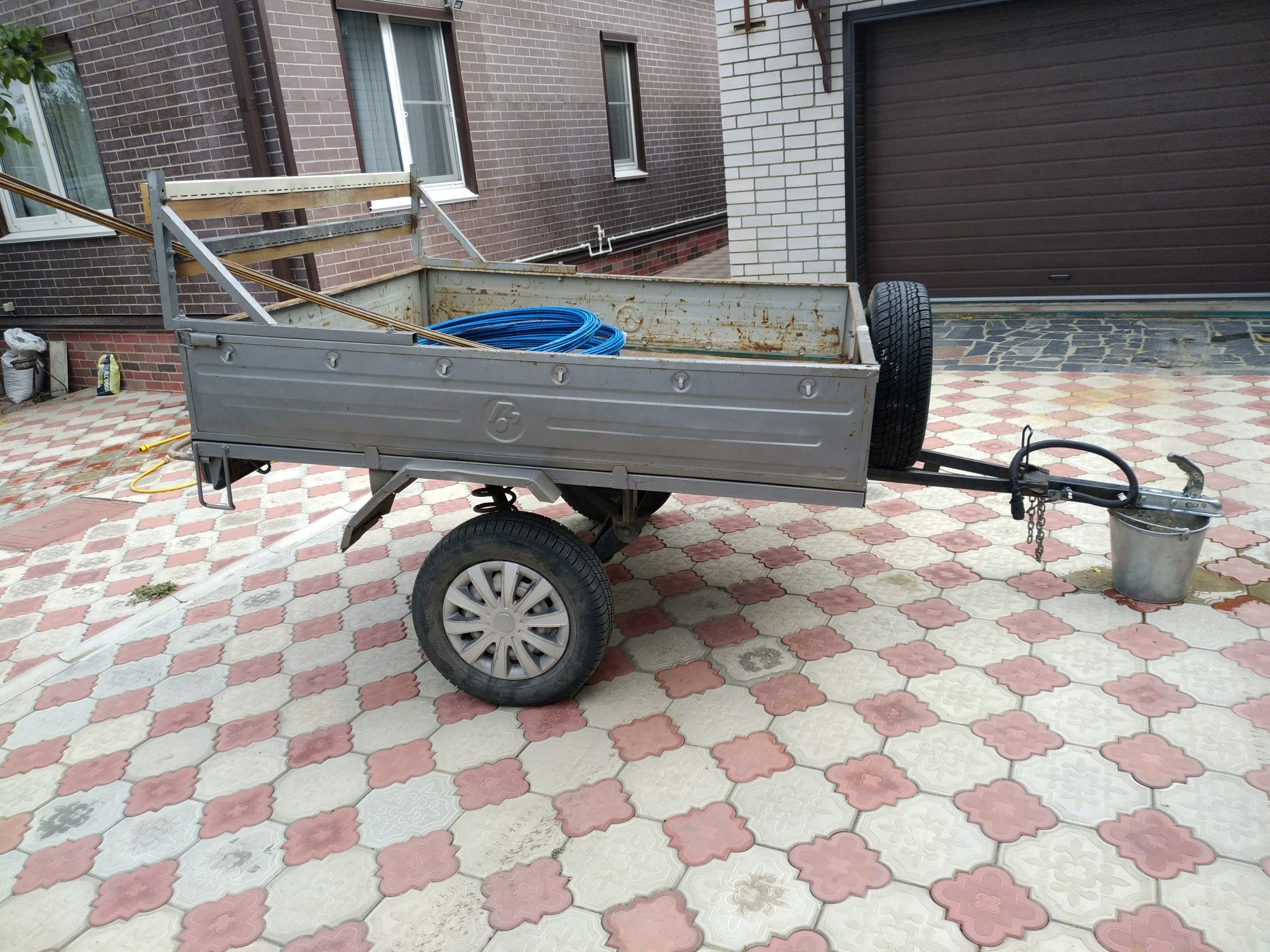 есть прицеп габаритами кузова 1,8*1,6. Поставлен на заднюю балку от 12-ки, пружины и аморты от 4-ки. Сделаны крепежи для стяжек по дну кузова вдоль бортов. Новые 13 колеса и абсолютно новая запаска, дуги под тент увеличил, тент новый шил. Ни разу его не ставил. Откидываются задний и передний борты. Новое сцепное устройство. Грузоподъемность 500. таблички все на месте, рама целая без проблем, не гнилой нигде. Год выпуска 1991, доки в порядке. Хочу 20000р