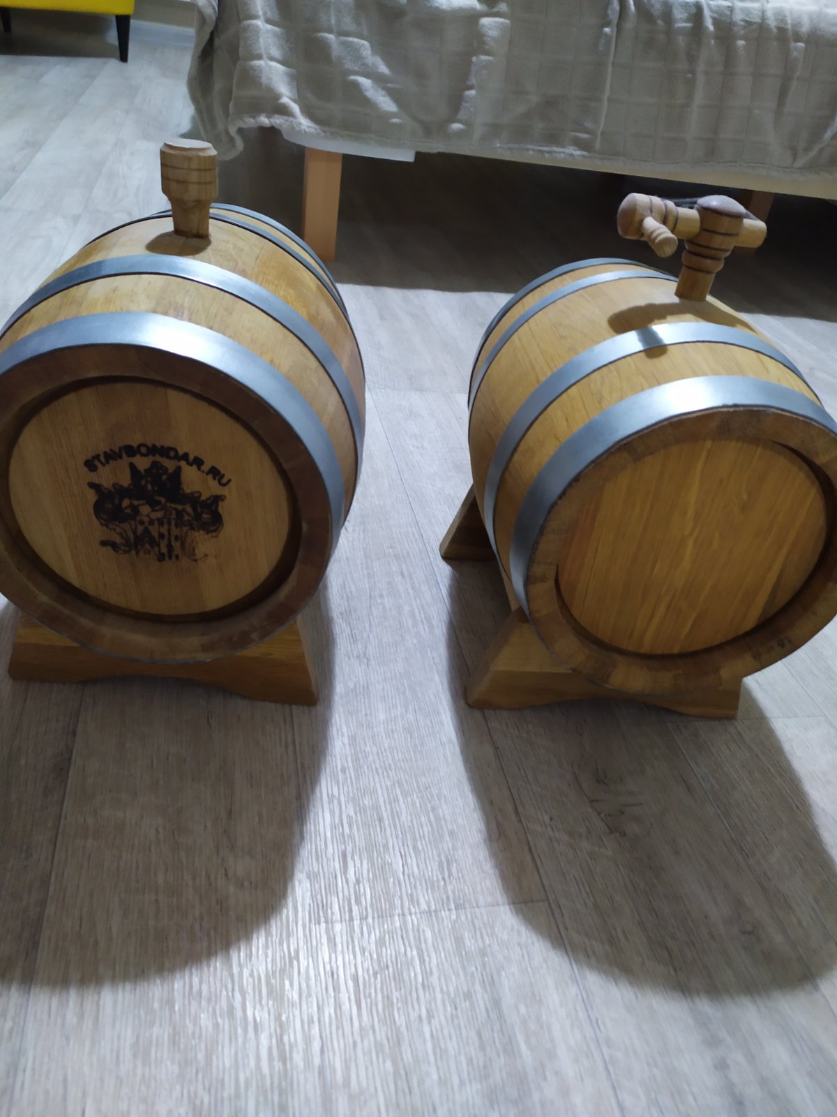 Вот фотки. По цене. Пусть будет по 5000 за бочку. Плюс бонусом трехлитровая бочка из дуба, напитки в ней в ней просто огонь через три месяца, такой "вкусной бочки" еще не встречал. Но есть косяк рассохлась надо заново собирать. Подтекает. Упустил момент когда в ней все закончилось.