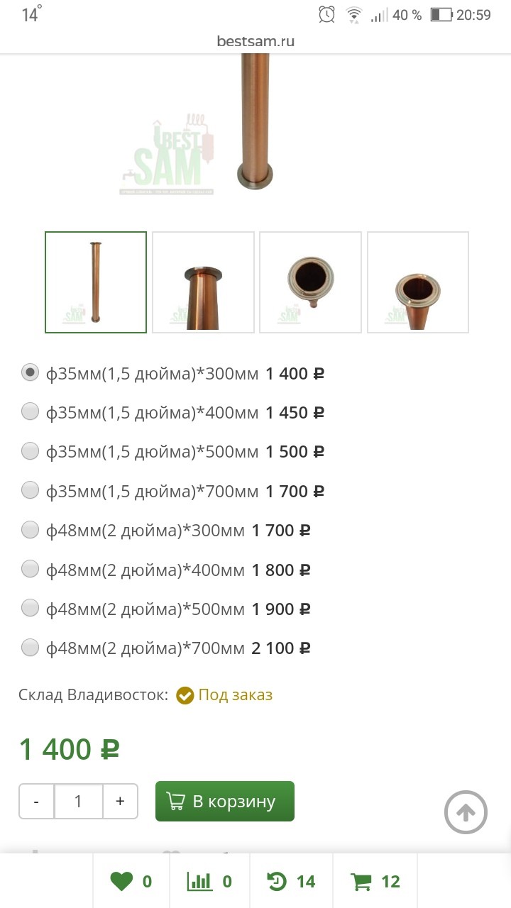 Закажи у этого мастера, если по цене устроит Изготовление Изделий Из Нержавеющей Стали Урал - Оборудование для винокурения и ректификации Аааа, ты медную собрался прикупить. Тогда вот эти мастера Волжский Медное оборудование для дистилляции и ректификации. Антел. - Оборудование для винокурения и ректификации И не местный Оборудование от BALTIS - Оборудование для винокурения и ректификации Я РПН использую только на финишном перегоне, потому кипячу не часто, перед каждым 10-тым перегоном, не раньше. А вот медный дистиллятор замачиваю в горячей барде на последнем перегоне браги. Всего их три с двух бочек. Для измерения спиртуозности? АСП-3 всяко лучше... АСП-1 еще и точнее. Для себя решил, что оно мне не надо. А вот АСП-1 90-100% хочу прикупить, но пока рядом никто не продавал... Так производство никогда на месте не стояло.