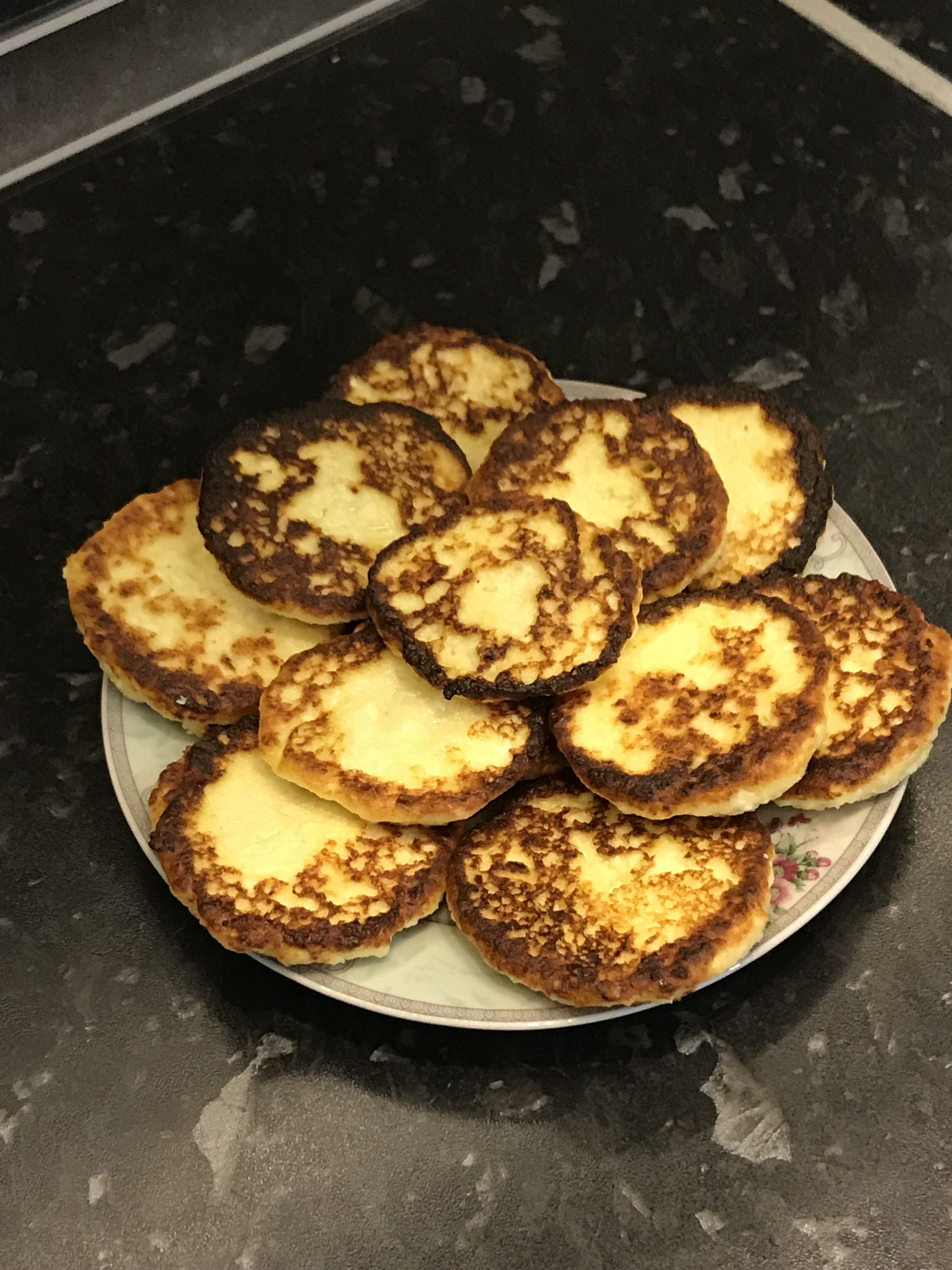 Продолжаю искать свой рецепт) Эти прям очень даже Творог - 600гр, Вкуснотеево в стаканах 5% Яйцо - 1 шт Сахар - 2 ст.л. Ванильный сахар Манка - 1 ст.л. Мука - 2 ст.л. Мука для обваливания Планировала полностью на манке, но закончилась. Творог перетереть через металическое сито, получится мелкая стружка. Яйцо смешать с сахаром, ванилином. Отправить в творог и перемешать. Добавить манку/муку, хорошо перемешать. С манкой надо давать тесту минут 20 постоять. Формируем сырники и на горячую сковороду с растительным маслом. Со сковороды я их кладу на бумажные полотенца.