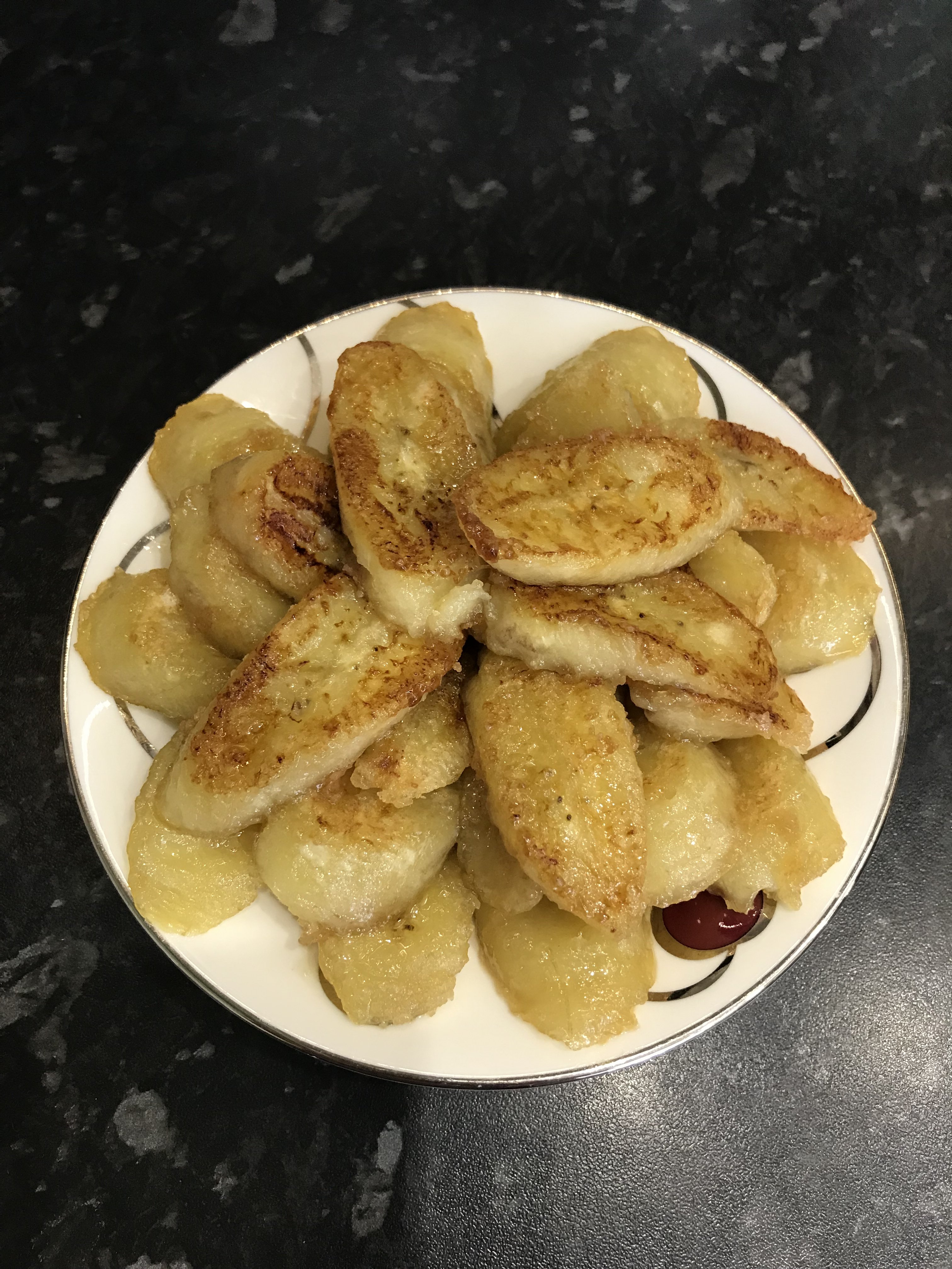 300гр творога 2 столовые ложки манки 1 яйцо ванильный сахар по вкусу Всё хорошо перемешала и оставила на некоторое время. Пожарила бананы на сливочном масле с сахаром, затем там же и сырники. Сырники не помешало бы обвалять в манке, форму лучше бы держали) @Crazy Fox, на каком режиме выпекаешь?