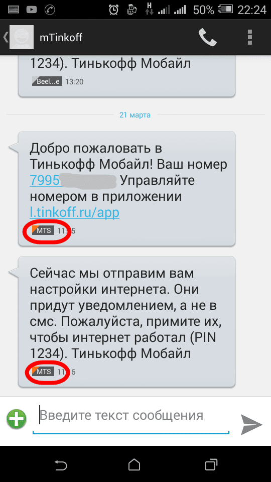 SIM от ТМ не стоит. На скринах специально обвел красным установленного оператора. То есть если стоит билайн, то СМС отображается, как будто пришло с ТМ на билайн, если МТС, то как будто с ТМ на МТС. Происходит это после каждой перезагрузки аппарата. Приложение ТМ удалено. В техподдержке ТМ говорят, что этого не может быть. Или везите аппарат в сервис. До заводских настроек не сбрасывал, так как сильно это не напрягает, но не рад я таким непоняткам.