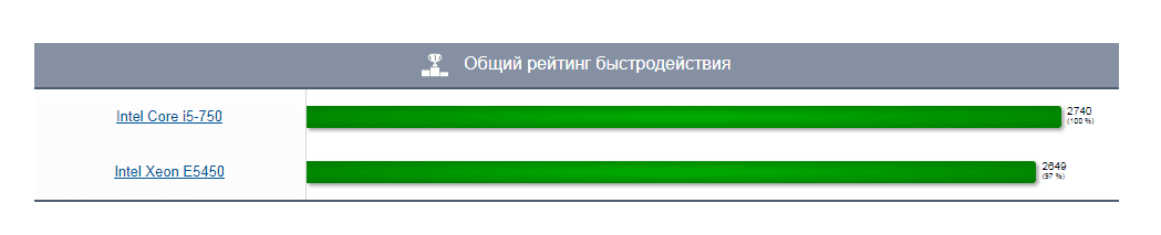 ребята форумчане подскажите саит реитинга производительности процессоров,самостоятельныи поиск не привел к должному результату,а цель ,сравнение процессоров INTEL Core i5 Processor I5-750 и Xeon E5450 771 сокет,на борту будет 4 гб ддр 3 (1333) ,ссд,комп не для игр ,на ваш взгляд что по производительней будет?