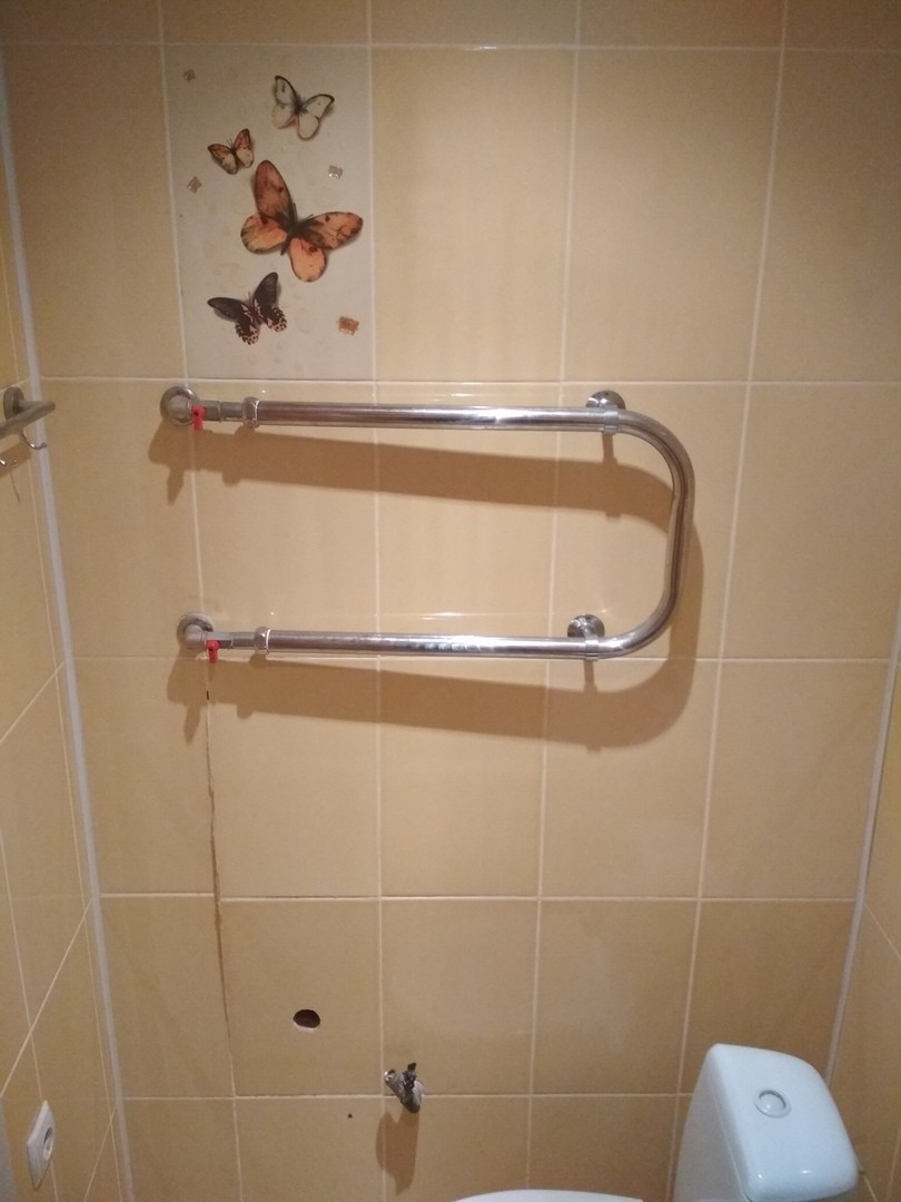 Необходимо восстановить/заменить часть плитки в ванной в съемной квартире. В стене долбили 2 отверстия перфоратором, чтобы провести временный подвод/отвод для стиралки, которая стояла за этой стеной в коридоре, из за чего отошли 2 ряда плитки на стене в ванной(8-9 штук). Масштабный ремонт не планируется(т.к съём), нужно снять отошедшую часть плитки и если при демонтаже не повредятся плитки, положить их обратно на подготовленную поверхность заново или заменить новыми. Также необходимо заменить по возможности в цвет(или на какие нибудь с декоративным рисунком) 2 плитки с отверстиями от перфоратора(фото прилагаются) и заделать 2 отверстия в стене. Советский район