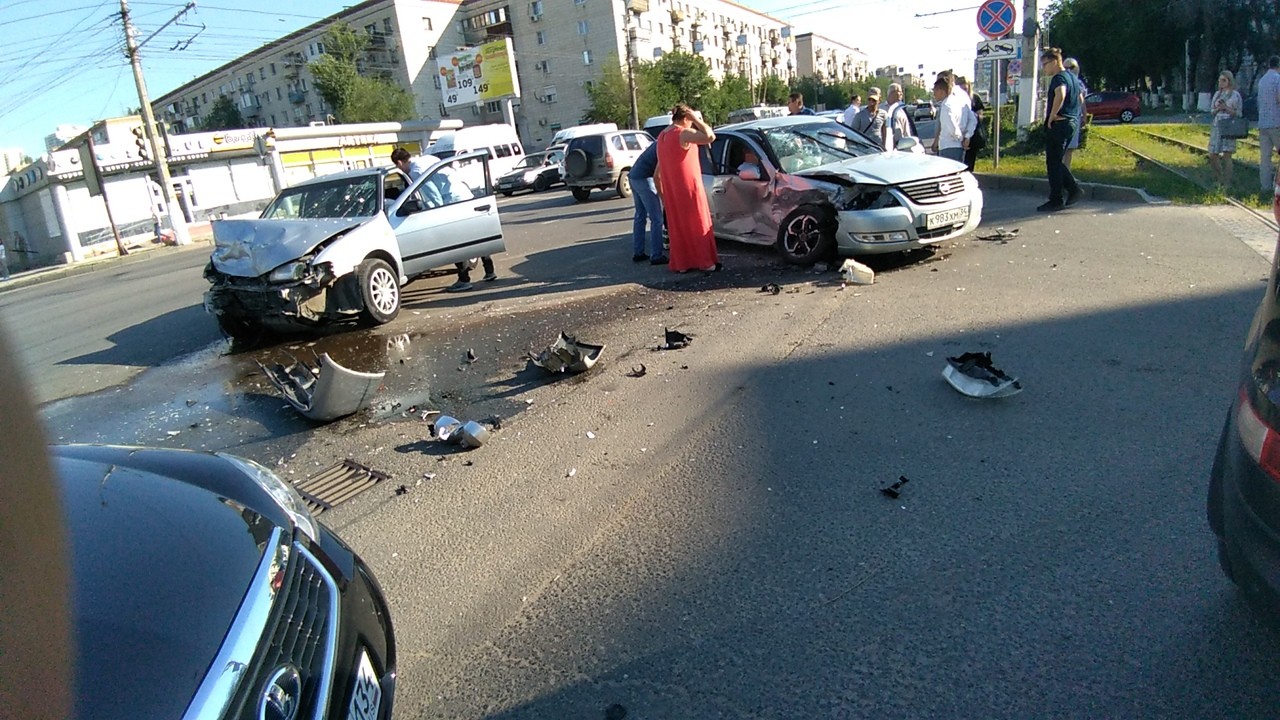 Вангую: ниссан поворачивал налево и получил в бочину от прамоедущего. Стопудов не обошлось без маршрутки, поворачивающей из не своего ряда.