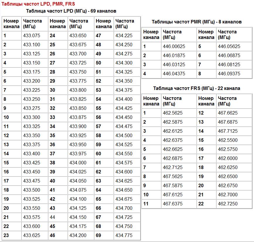Попробовали))) В таблице частоты вида 446.06025 Но на рации, где можно выбрать частоту, можно ввести только 3 цифры после точки. 446.060 - не ловит.