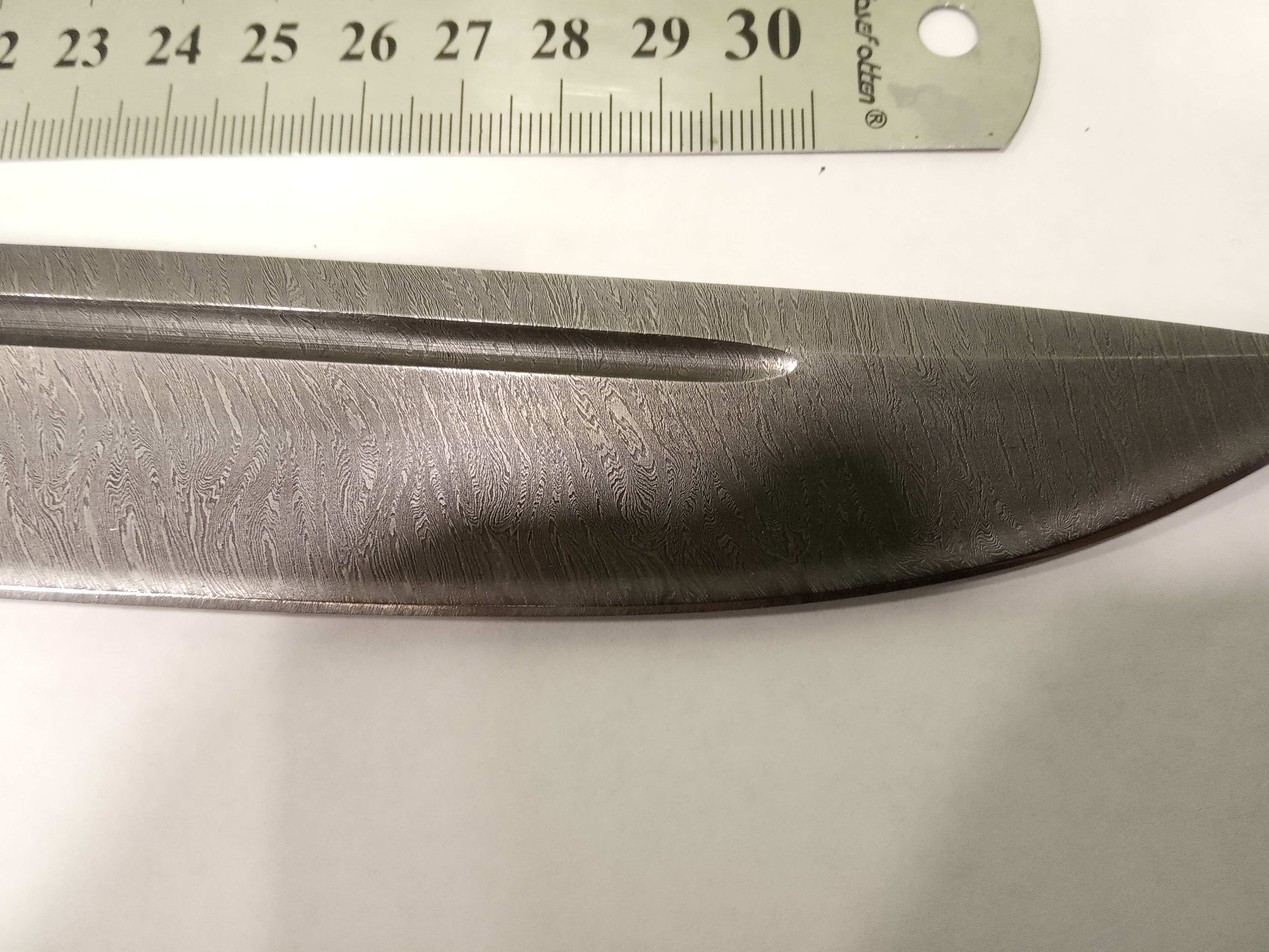 Новый, жена подарила на новый год, но я не любитель ножей. Заказывался тут Нож Пластунский (Дамаск 1200 слоев, мореный граб, латунь) деревянные ножны Порезал им 2 листа бумаги и убрал в коробку. Не холодняк, сертификат в комплекте. НОЖ ПЛАСТУНСКИЙ (Дамаск 1200 слоев, мореный граб, латунь)ДЕРЕВЯННЫЕ НОЖНЫ Ширина клинка30 мм Длина клинка215 мм Толщина обуха4,5-5 мм Длина рукояти140 мм Твердость клинка60-61 HRC Прошу 10тр