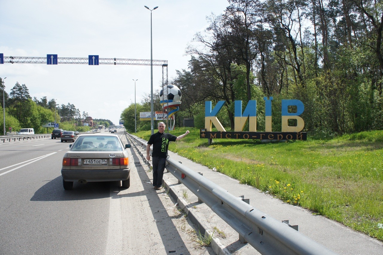 2. Хотелось иметь фото с нашей общей поездки что бы в кадре не ценник АЗС а на фоне знака "Киiв" .Вот он на моем фото 2016 года. Но благодаря кое кому фото пришлось делать реально на АЗС после перекуса :) . Реформы на Украине