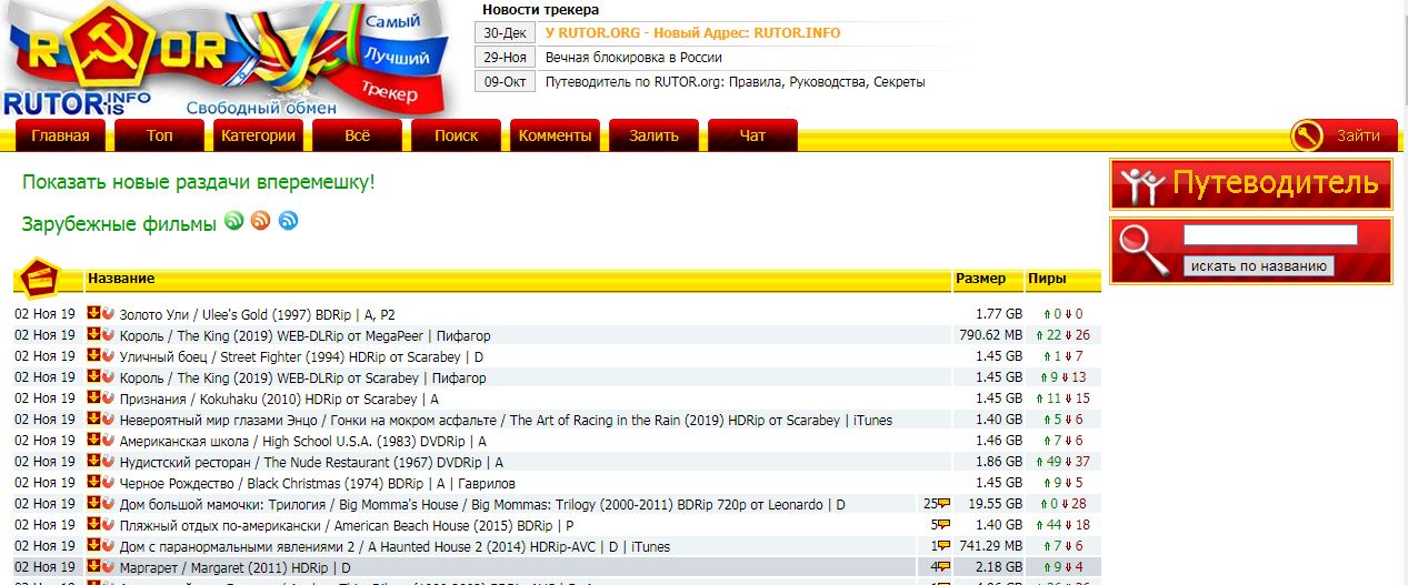 Первое ноября прошло. Сайт, откуда сного лет качал фильмы в хорошем разрешении сдох совсем.ну вернее все же его заблокировали. Его давно блокируют, но как-то находил обходы для скачивания. А теперь даже через ТОР просто открывается главная страница и все, переходы невозможны. Приехали.