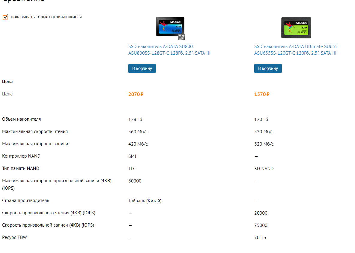 обязательно обратите внимание на объём, там должно быть минимум 240ГБ иначе скоро придётся менять... а разница в цене небольшая.