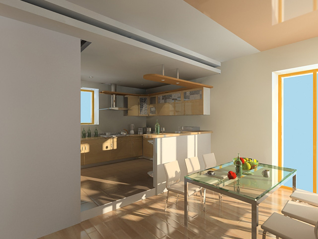 Desdichado свет надо как минимум расставить правильным без искусственных источников освещения. у тебя их там вообще нет, а свет в какашке. дальний угол кухни вообще темный. для этого, если все естественные источники выставлены корректно, добавляются всякие лапмы и прочее. а ракурс.. ну как можно голую стену показывать на 1/3 всей композиции?