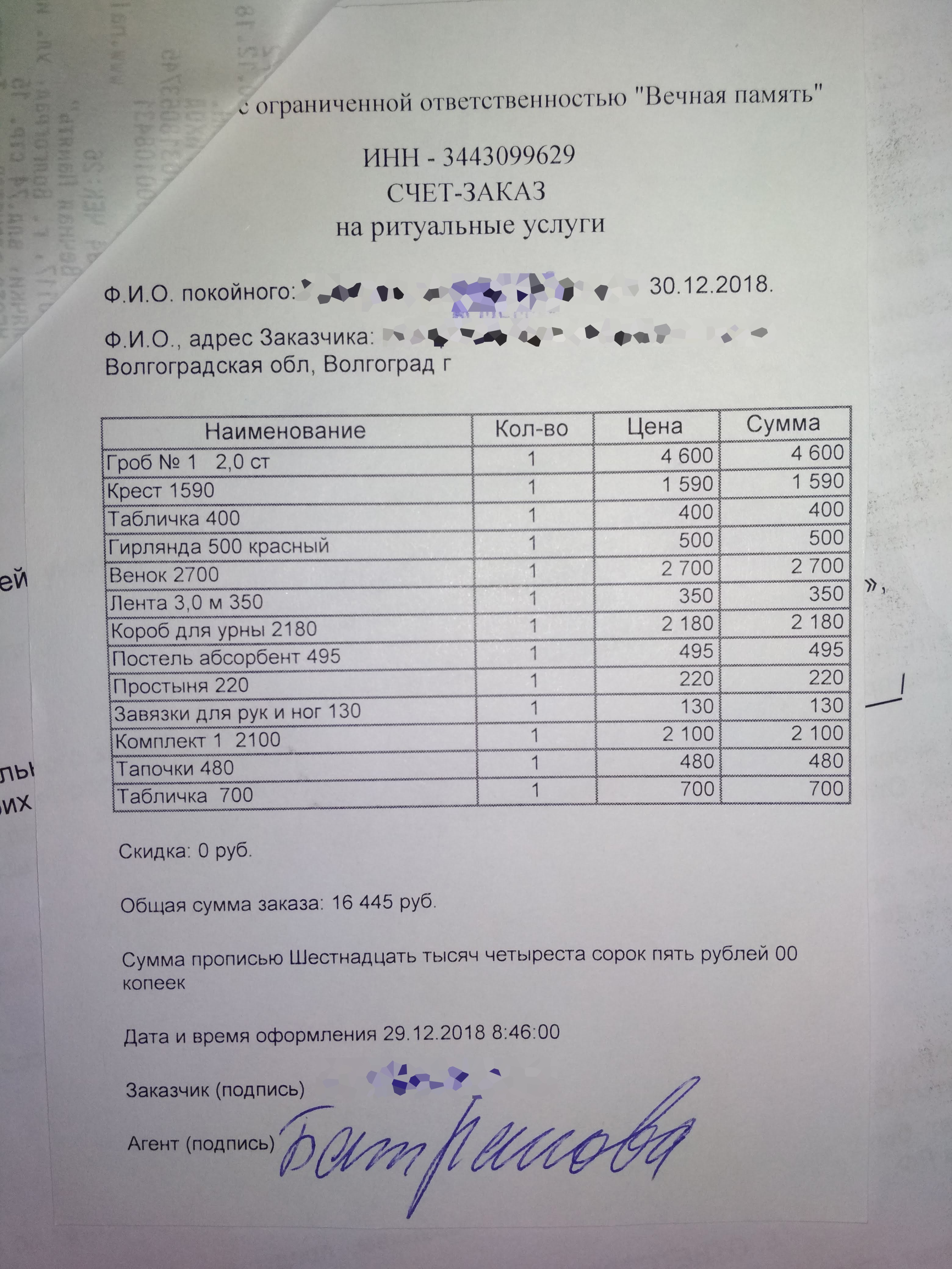 Сейчас в один день сделали, правда, ПФ мутит с суммой: на сайте с февраля должно быть 5900+ (не помню точно), а выдают 5701. Порядок такой: ЗАГС (прождали около 2-х часов в очереди, свидетельство и справка (ф.11)) - из него в ПФ (получили бумажку для почты) - из него на почту (деньги выдали сразу). В общем за 1 день мы успели получить справку в ЗАГСе, взять бумажку в ПФ, получить деньги на почте, посетить МФЦ (снять с регистрации, взять справки в ИВЦ ЖКХ, Межрегионгаз и нотариусу - справки нужны везде, где потребуется подтверждать "выписку" из жилья), отдали справки в ИВЦ и Межрегионгаз, чтобы перестали начислять за ЖКУ. По поводу оформления в ЗАГСе свидетельства агентом - не соглашайтесь! В ЗАГСе часто делают ошибки, агенты не проверяют, при нас 3 человека пришли переделывать свидетельства. Именно так, - на каком то мягком полимере, при этом оказалось, что рамка включена в стоимость (т.е. про наличие этой рамки в памяти просто умолчали) Боюсь, если Вы не имели в виду Горную поляну (где у нас и были похороны), то еще и там. Разница огромна: оплачивая из своего кармана, получаете участок земли 2 х 2,5 с возможностью поставить ограду и дозахоранения еще троих, а вот соц. похороны - это "могилка на могилке", максимум, что получится поставить - это небольшой памятник и надгробие, ни о какой ограде не может быть и речи, т.к. она тогда просто встанет на соседние могилы. Т.е. соц. похороны - это когда ситуация вообще безвыходная (в ближайшие дни будем на кладбище, выложу фото, чтобы была понятна разница). Прошу прощения, здесь я ошибся. Ориентировался по тому, что отображается в ИБ (т.к. оплачивал картой из-за кэшбека). Более 37 тыс. ушло всё-таки "Памяти" (договор и чек).