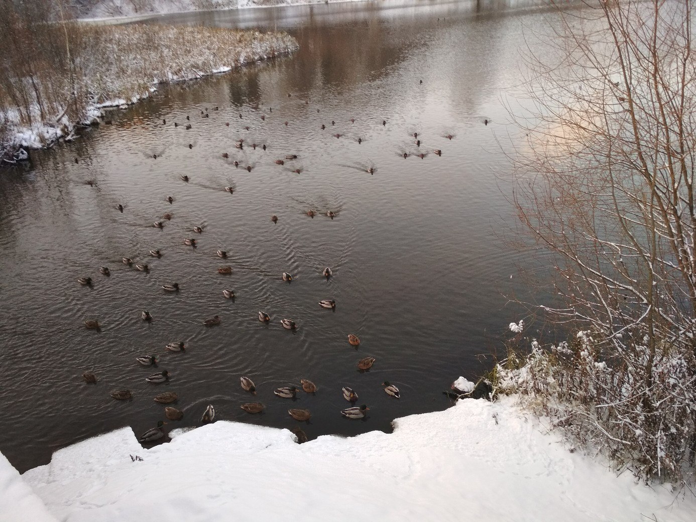 мне легче...я сейчас живу не в волгограде и прогулки по лесу 1-2 часа - ежедневно с собакой... в выхи - и 3 можем гулять, если погода хорошая... вот примерно как мы видим лес с балконов ..и ежедневные наши прогулки (на фото подруга с мопсом..)... А уточки - это пруд, когда идешь на остановку...покормить, постоять пару минут - и настроение меняется...