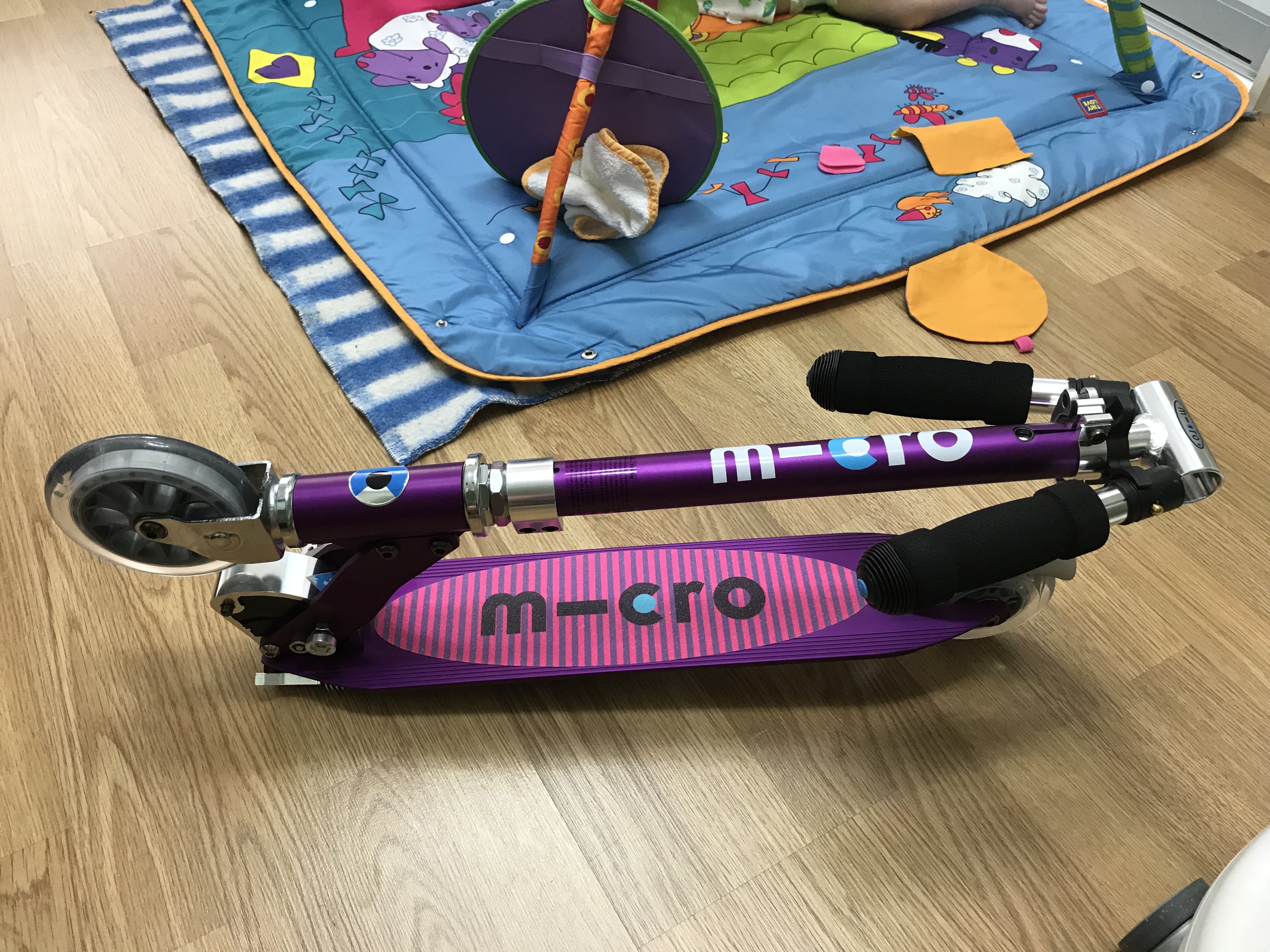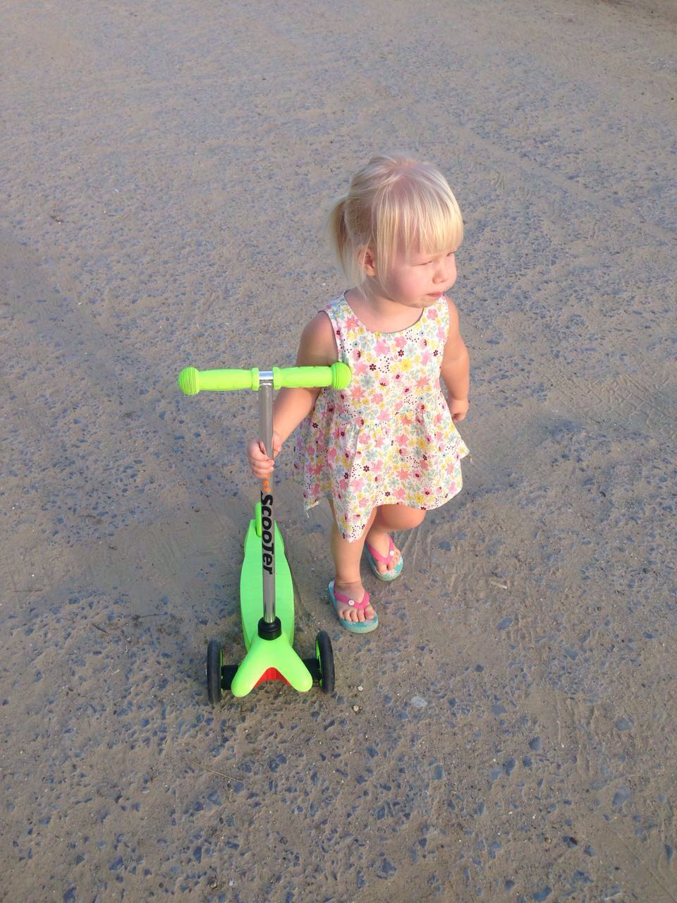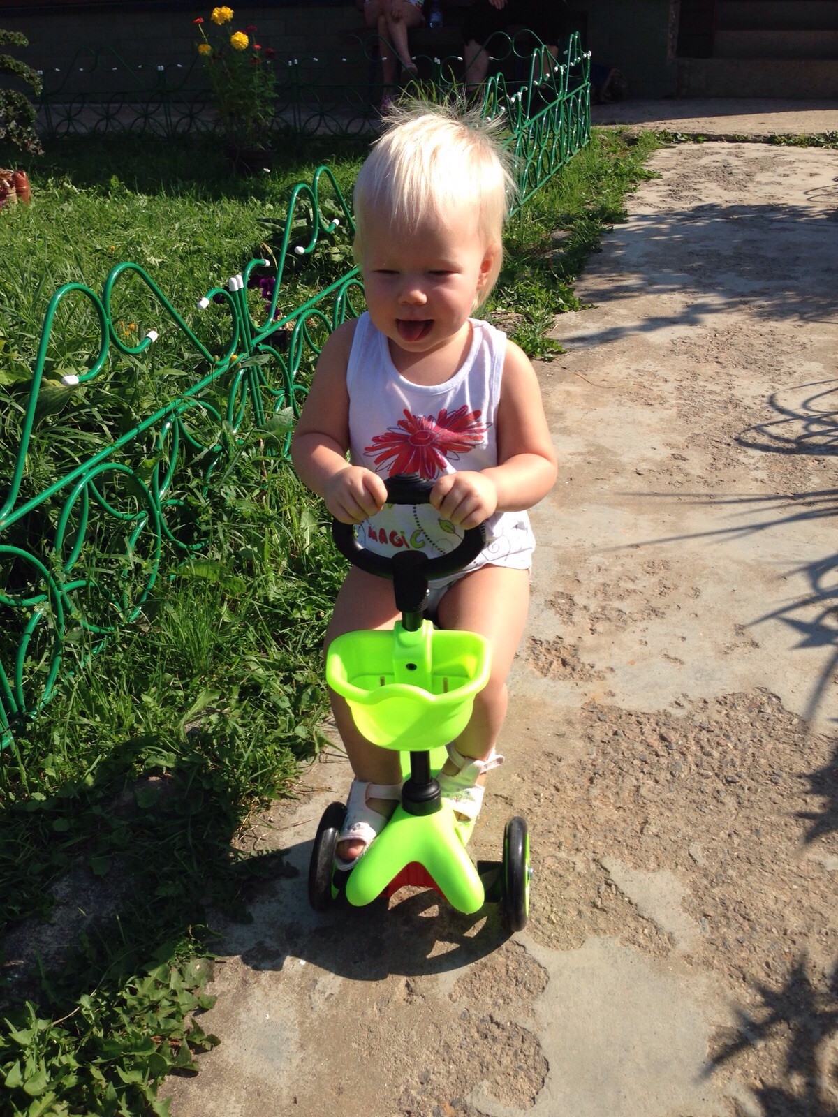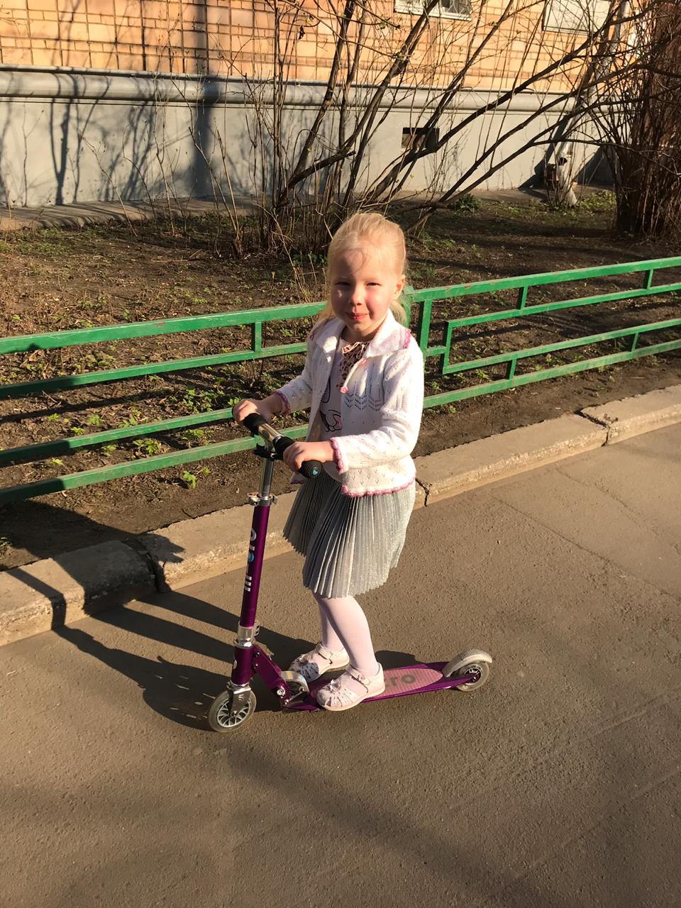 Самокат 21st scooter maxi scooter skl-06b (зелёный). Дочь посадили на него в 1г6м, на сиденье (регулируется на два уровня). В 2г2м поставили Т образную ручку. В 2г3м поехала на беговеле B.TWIN Run Ride. В 3г5м посадили на велосипед с доп колёсами Merida Chica J16 (2017). В 4г6м страховочные колеса убрали. В 4г3м поехала на 2х колесном самокате Micro Scooter Sprite: - ручка регулируется по высоте - до 100кг - подножка - складывается в пополам, плюс убираются ручки за которые руками держишься - тормоз Сейчас Даше 5л3м, выбираю ролики. Диму в 1г1м, посадили на самокат (который первый покупали Даше, зелёный на фото). И ещё у него беговел Chillafish bunzi fad, сейчас стоит как 3х колёсный, потом перекидывается в обратную сторону и получается 2х колёсный. Пока учится дома ездить на них. Вроде правильно всё написала)