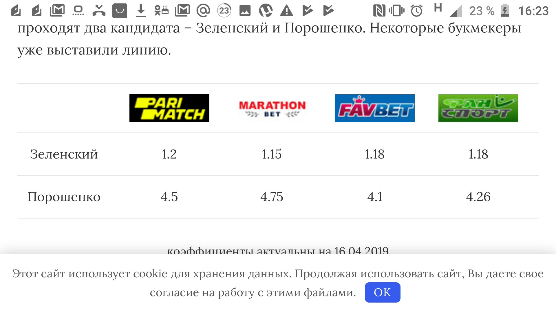 Да сейчас все ответы по всем вопросам можно воспринимать не более, как способ склонить в свою сторону как можно больше людей для разгромной победы.... А что там будет дальше, время покажет. Социологи Киевского международного института провели опрос среди граждан Украины и выяснили, что 72,2% из них во втором туре президентских выборов на Украине готовы проголосовать за шоумена Владимира Зеленского, пишет Федеральное агентство новостей. Его оппонента Петра Порошенко поддерживают лишь 25,4% опрошенных. Ставки на второй тур. Кто то ещё верит, что Порошенко пройдет? Мишико уже лижет будущему призеденту!
