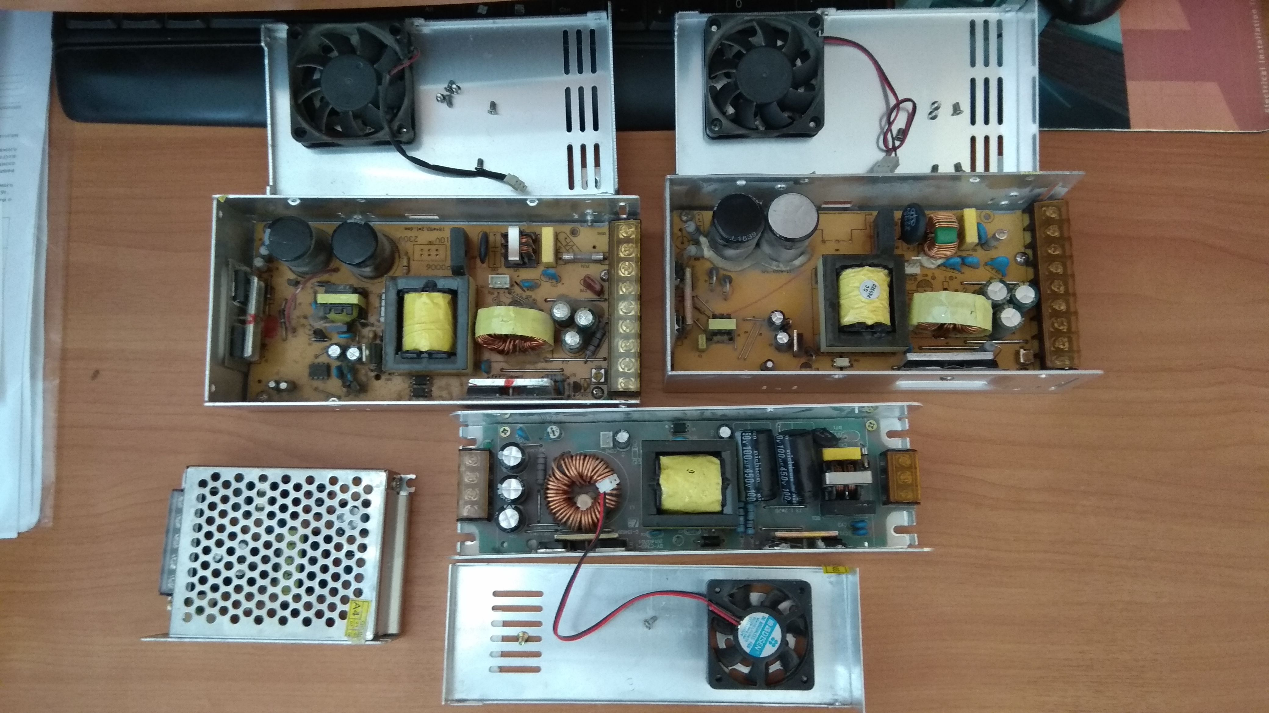 Периодически выходят из строя блоки питания на 12 Вольт. Мощность разная, от 50 до 500 Вт. Самому починить не хватает опыта. Выкидывать жалко. Думаю там реально 1-2 элемента требуют замены. Сейчас требуют ремонта 1. 50 Вт, на выходе нет напряжения. 2. 350 Вт, на выходе нет напряжения. 3. 350 Вт, на выходе нет напряжения. 4. 500 Вт, на выходе есть напряжение 12 В, но под нагрузкой оно может уменьшаться до 7 В Если есть желающие починить, пишите ценник на работы. Новый БП на 350 Вт покупал надавно за 1000 руб.