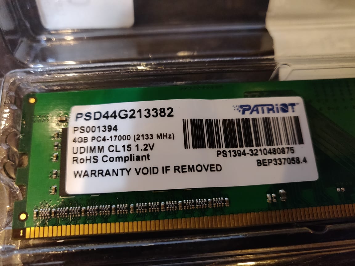Был собран пк: - Блок питания DEXP DPS-400 - Мат. плата ASRock A320M-DVS R3.0 - AMD A8 9600, SocketAM4 BOX [ad9600agabbox] - Оперативная память Patriot Signature Line [PSD44G213382] 4 ГБ x2 - 128 ГБ SSD-накопитель Intel 545s [SSDSC2KW128G8X1] Если вонзить любую 1 плашку озу в слот A, то все норм. Если любую другую в слот B, куллеры крутятся, пищалка молчит, монитор молчит. Если воткнуть в любом порядке обе, симптомы те же. Проц не гнутый, снимал раза три, биос до последнего обновил, выставлял принудительно частоты оперативки, МП с лупой осмотрел - повреждений не вижу, плашки отличаются лишь каким то номером под штрихом, по артикулу и проч, все то же самое. Надеюсь все же на несовместимость плашек между собой, но смущает - какого они не работают в слоте B. Брал в ДНС, есть ли шанс что плашку заменят? В наличии к тому же нет ничего. (брал на заказ)