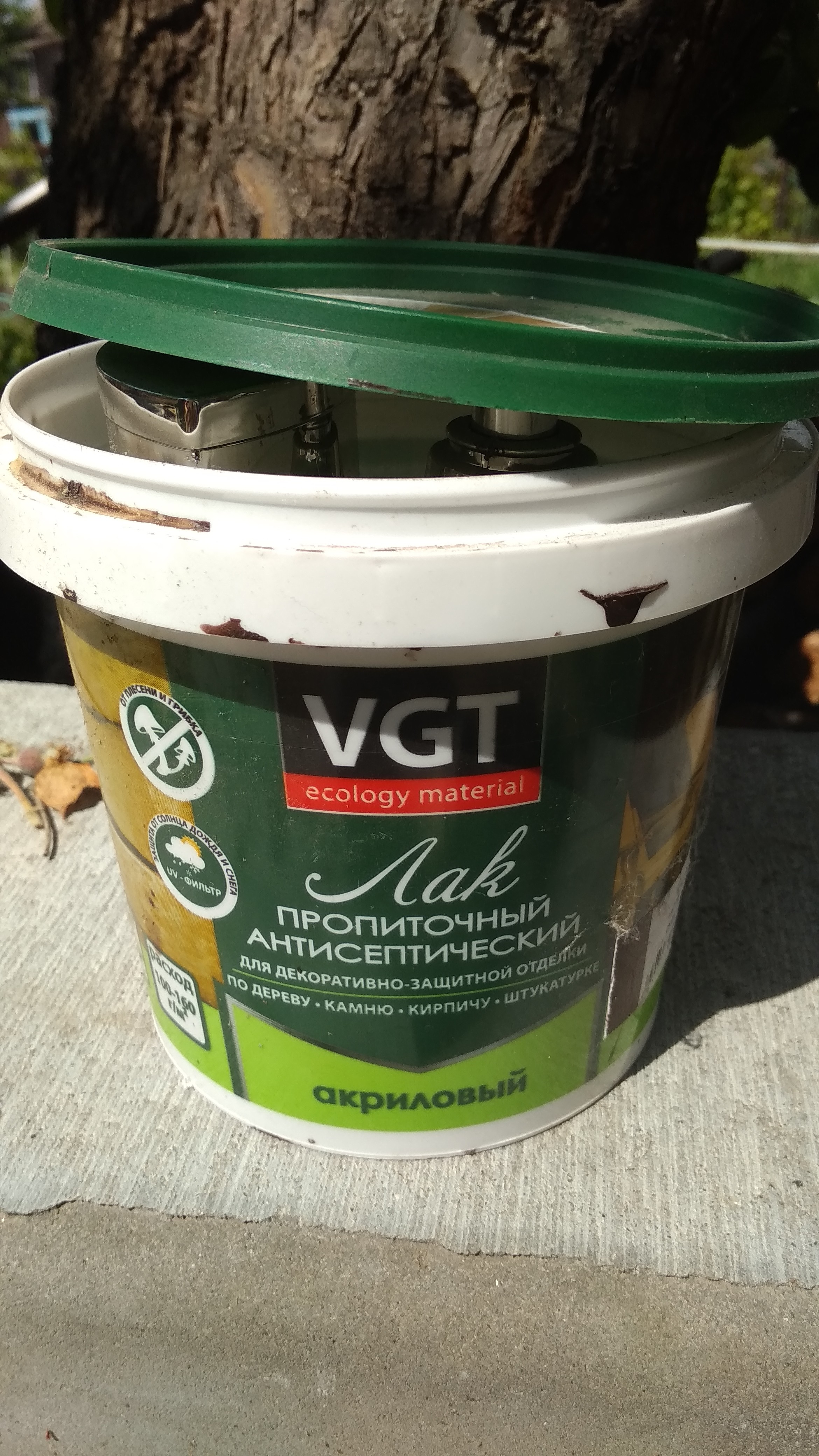 Хаски тема! Пропитка с антисептиком. Малому домик на дереве делаю. Покрыл этим делом. Год прошел, все в порядке.