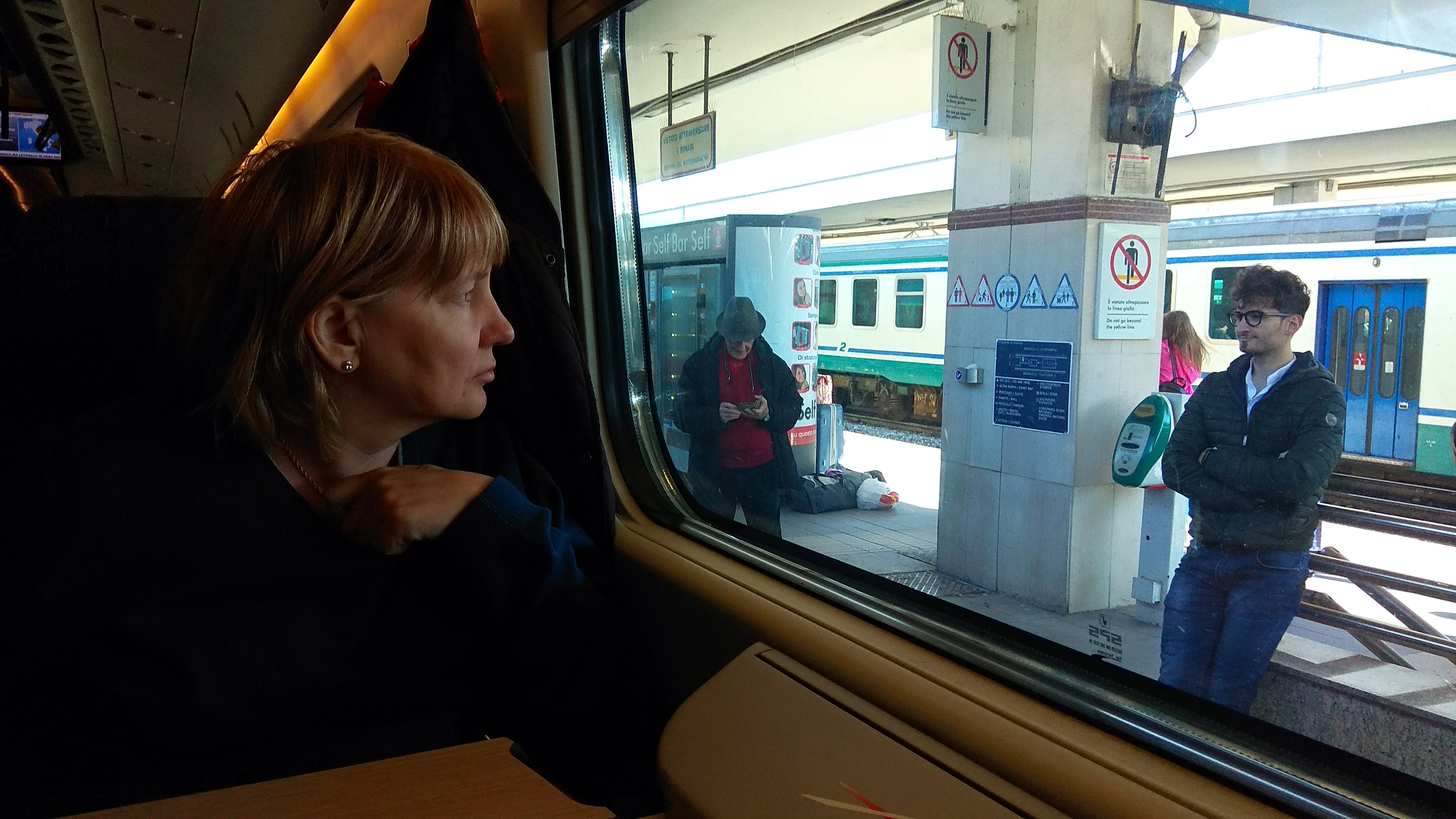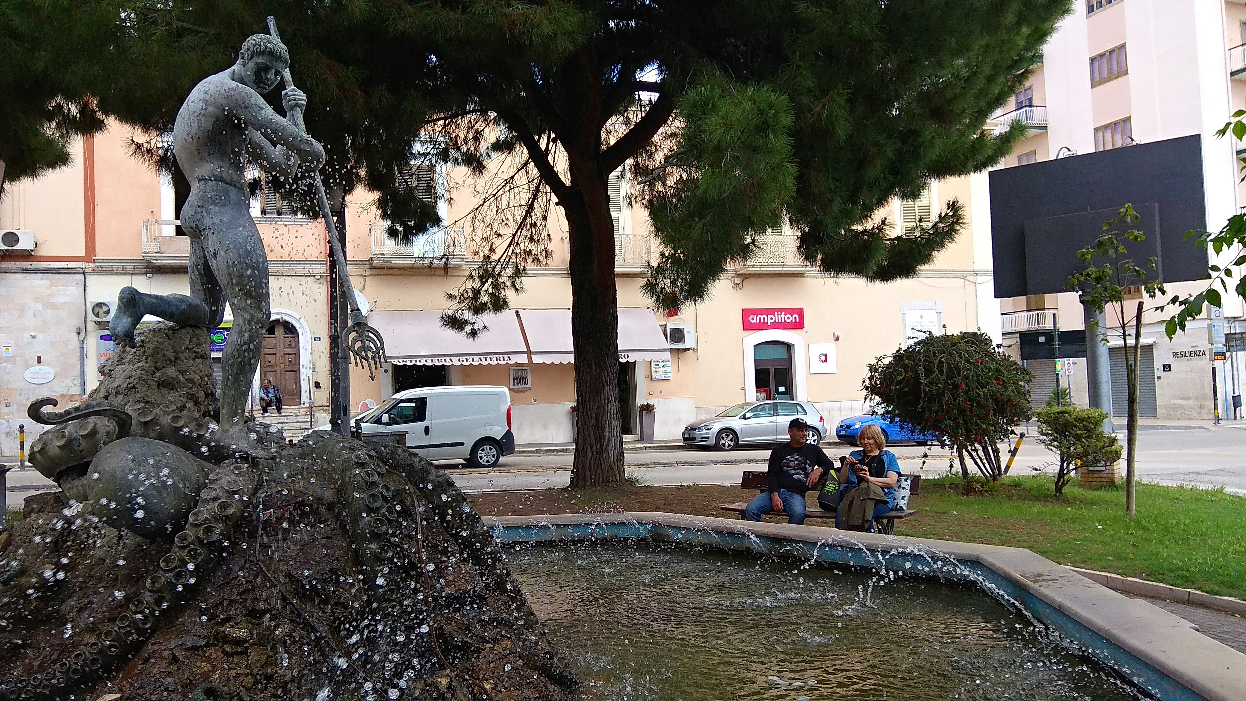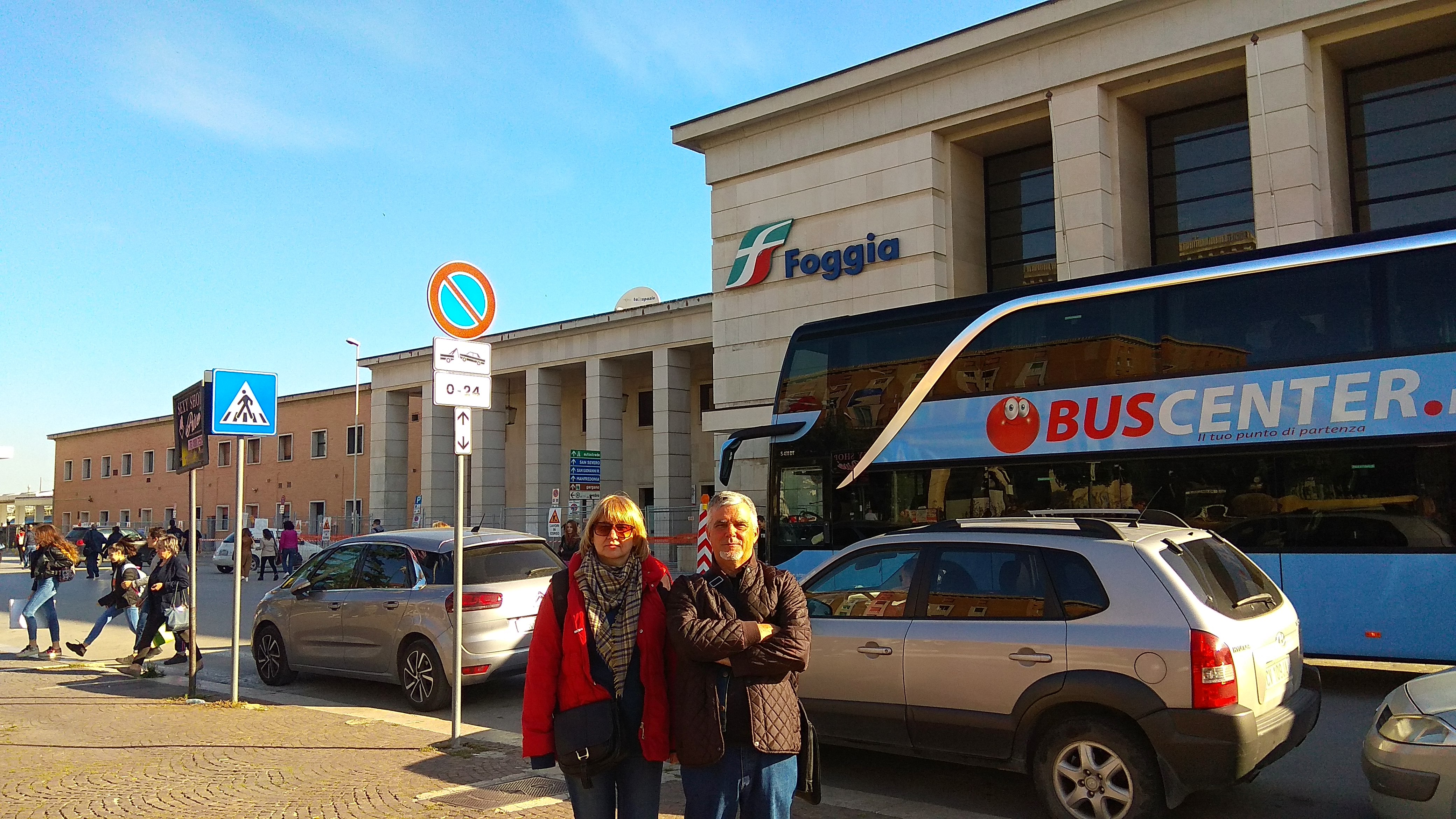 Ну вот. Как то и время летит. Отпраздновали Д.Р. брата в пиццерии с родней . Подошел 15 день нашей поездки . С грустью собираемся в обратный путь . Багажа прибавилось нехило так. Выезжаем из Сан-Джованни вчетвером на автобусе до Фоджи. Василий с женой изъявили вместе с нами погулять по Риму. Но у них билет по 4 евро из Фоджи до Рима на автобусе. У нас 51 евро за 2 на поезде. Мы выезжаем на час раньше их . Билеты у нас в музеи Ватикана с посещением ресторана на 14.00. А они только в 14 прибывают. Договариваемся созвониться. А пока хоть немного глянем эту Фоджу -пока поезд на подошел.