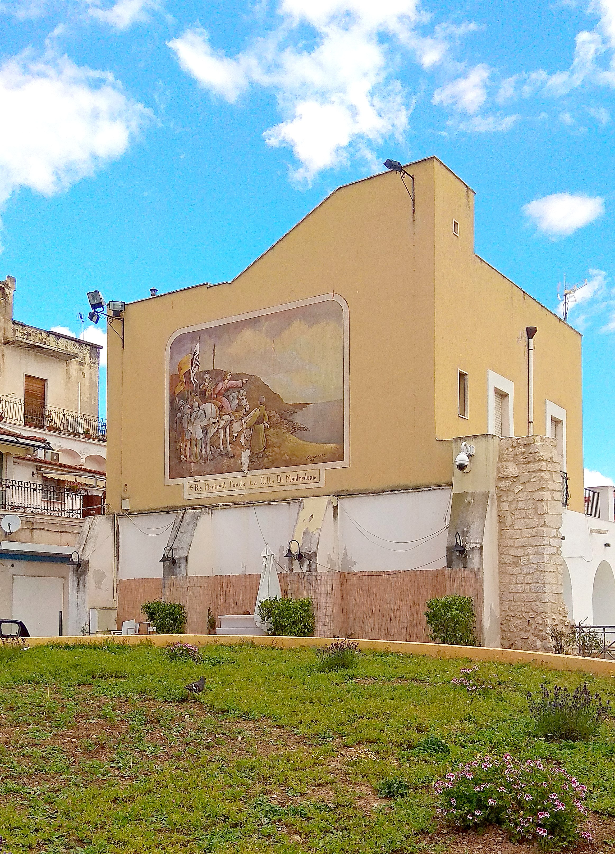 Итак неделю мы отдыхали у брата в гостях в этом городке . Конечно тупо сидеть в доме- это нас не устраивало да и родню тоже. Поэтому делали выезды в близлежащие окрестности . В один из дней нас повезли высоко в горы в паломнический городок Монте-Сант-Анджело ( ехать около 30 км ) В Монте-Сант-Анджело в резиденцию к Архангелу Михаилу. Святилище Михаила Архангела (Монте-Гаргано) — Википедия Туристов полно . Автобус польский подъехал большой с поляками. Но погода. Давно в такой туман не попадал. Как в молоке. Говорят красивейшие виды оттуда сверху открываются- не повезло- ничего не видно. Но все равно интересно. Городок старый- вот так живут жители местные- это их дома на фото- прямо с улице в дверь и ты в квартире. Ну и достопримечательность конечно посетили. Подземную церковь Говорят что 490 год ! Посмотрели-вышли на улицу-погода совсем испортилась-дождь. Все равно прогулялись- зашли в кафе-кофе согрело нас немного . Поехали дальше . Так прошел 10 день нашей поездки