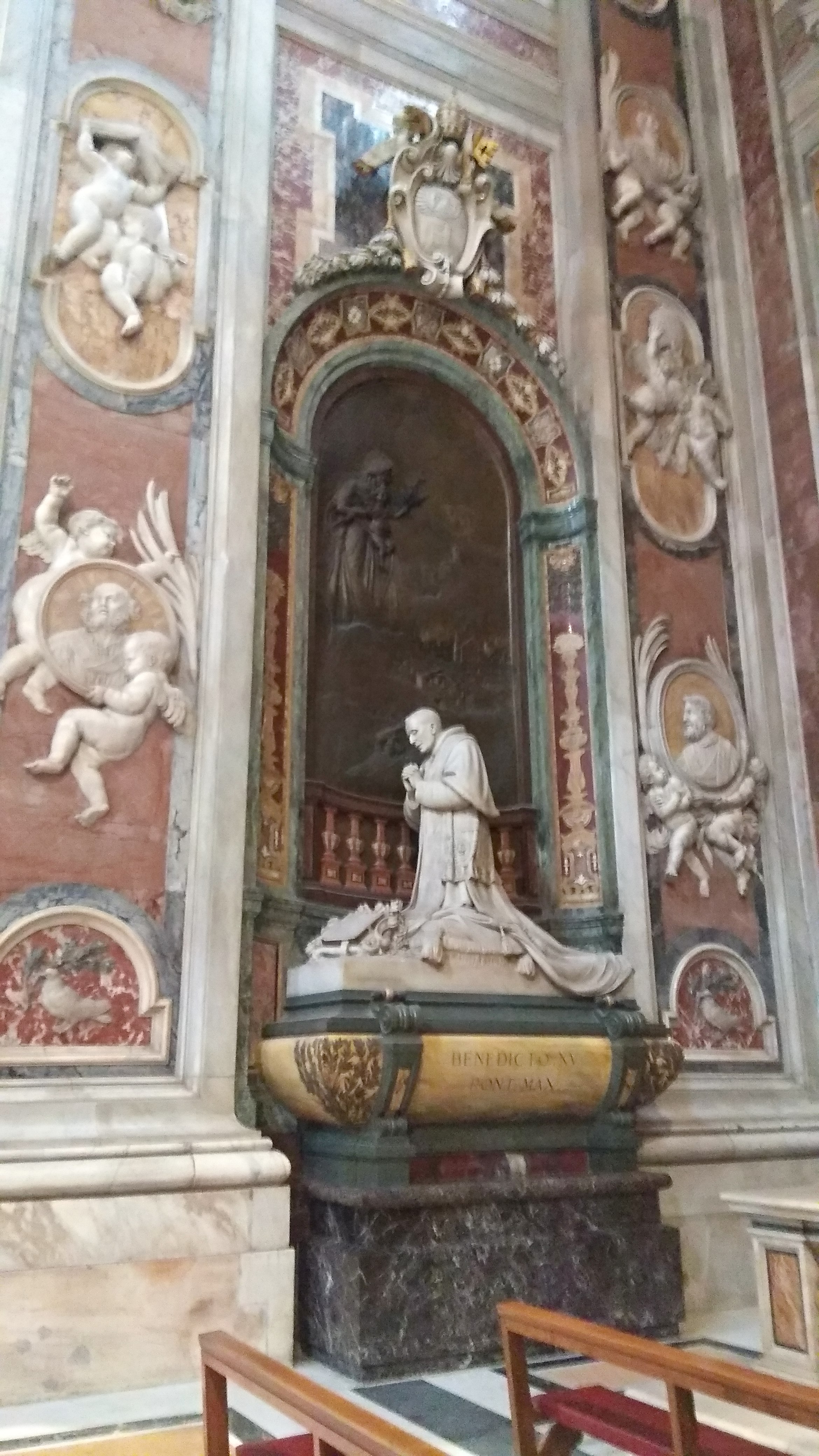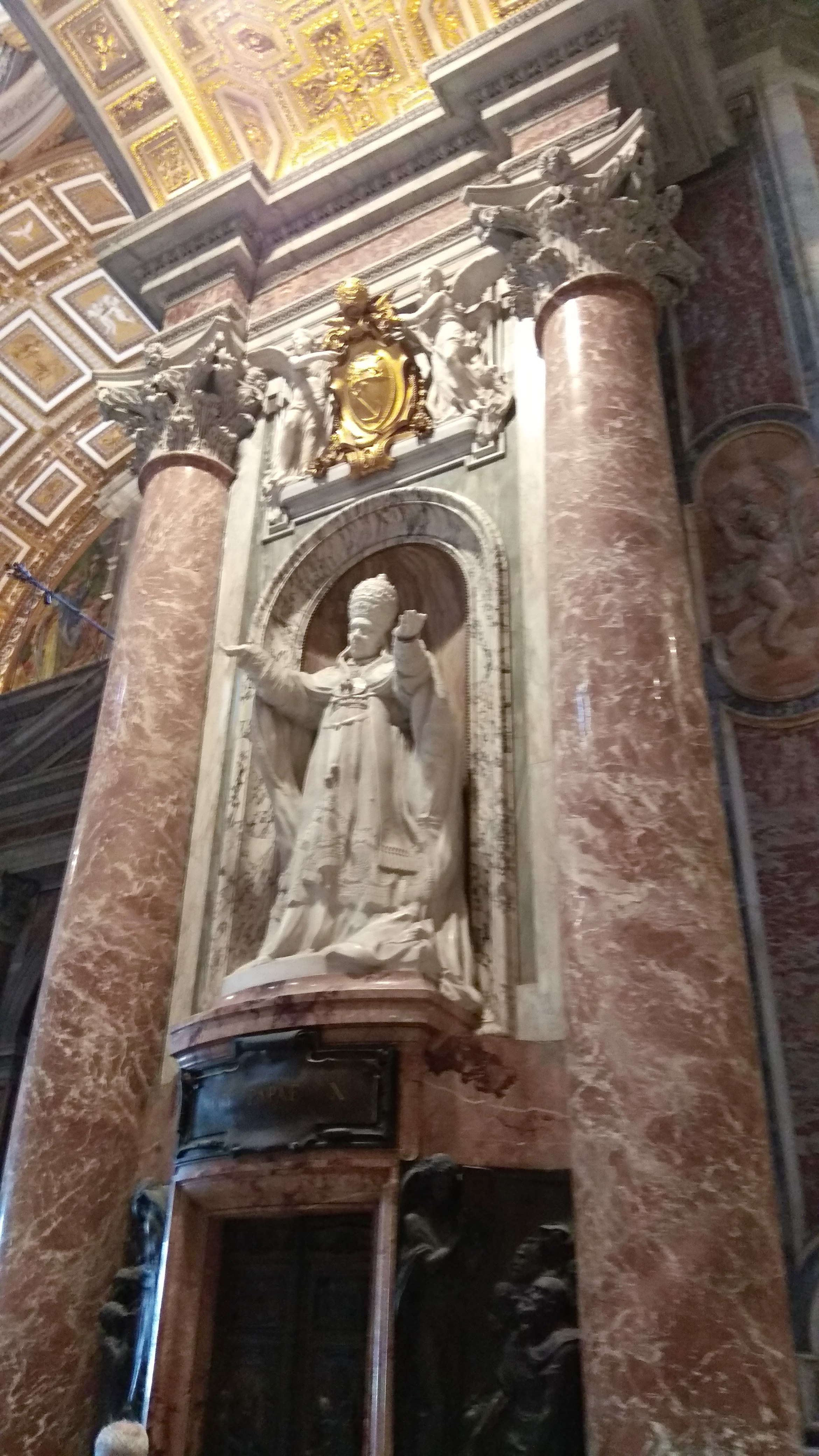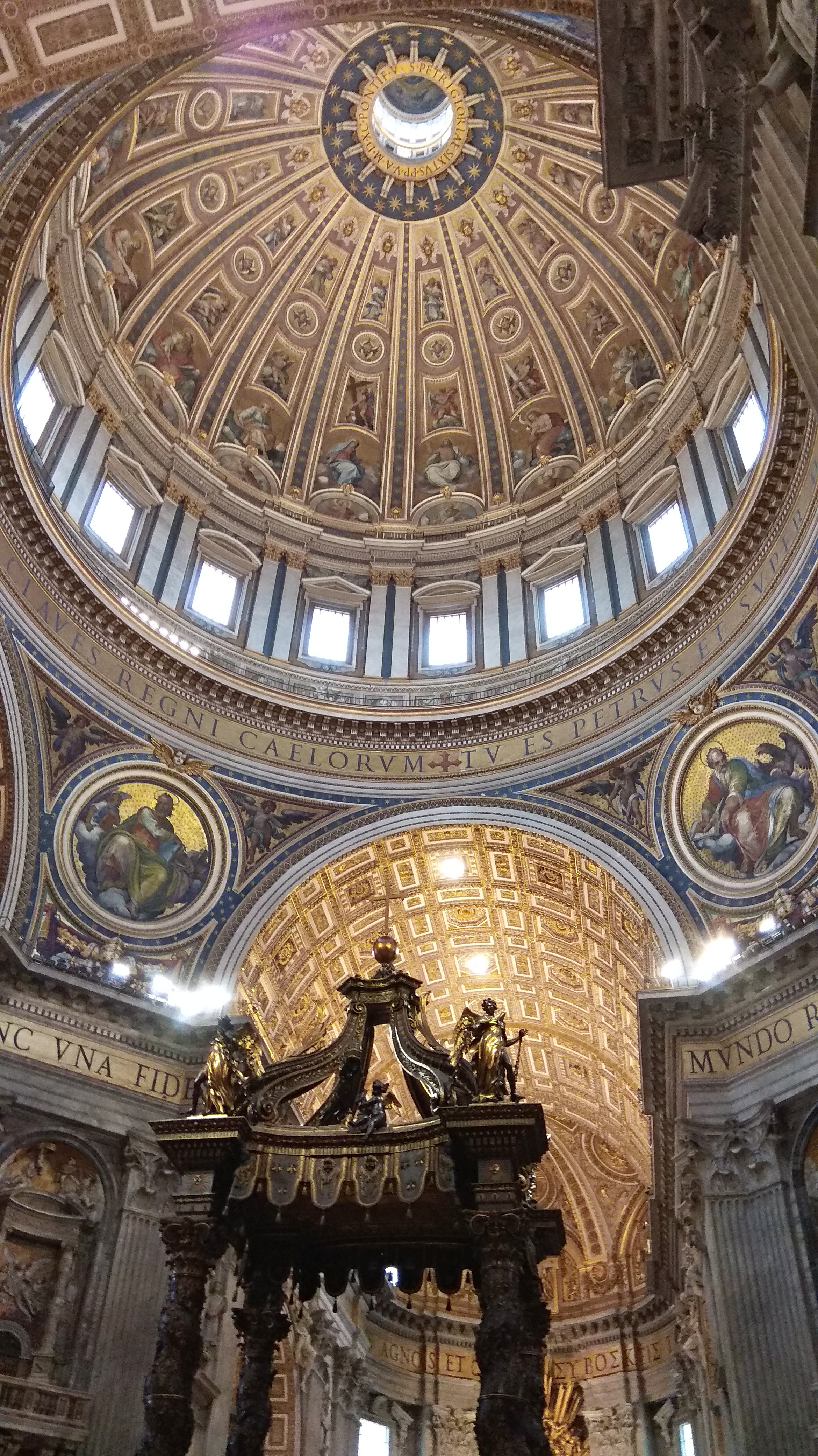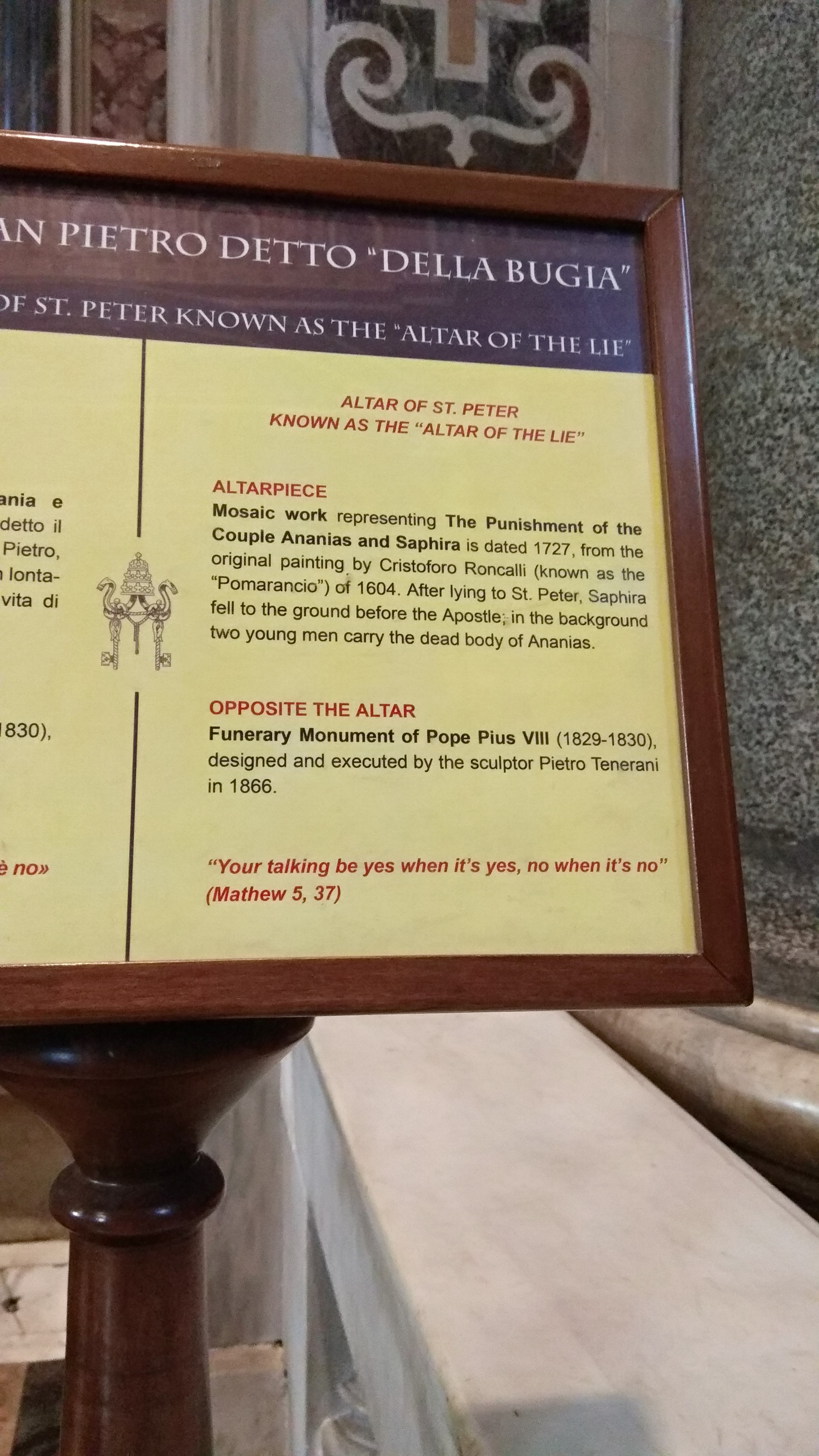 Ну надо же ! Предрасполагали-договаривались созвониться- что встретимся с братом и его женой в соборе ! А встретились случайно. Они зашли с улицы-вход бесплатный. Мы же через музей и Сикстинскую капеллу . И это хорошо.Иначе сами и не нашли бы незаметный вход под землю где захоронены предыдущие Папы Римские -прошлых времен. Зашли. Услышав нашу украинскую мову -к нам подошел охранник. Земляк ! Хахол- живет и работает в Риме. Рассказал немного подробностей а мы поснимали. Наслаждаемся шедеврами собора. С восторгом узнаю что это всё МОЗАИКА ! Кругом мрамор и композиции которым много веков.Потрясающе !