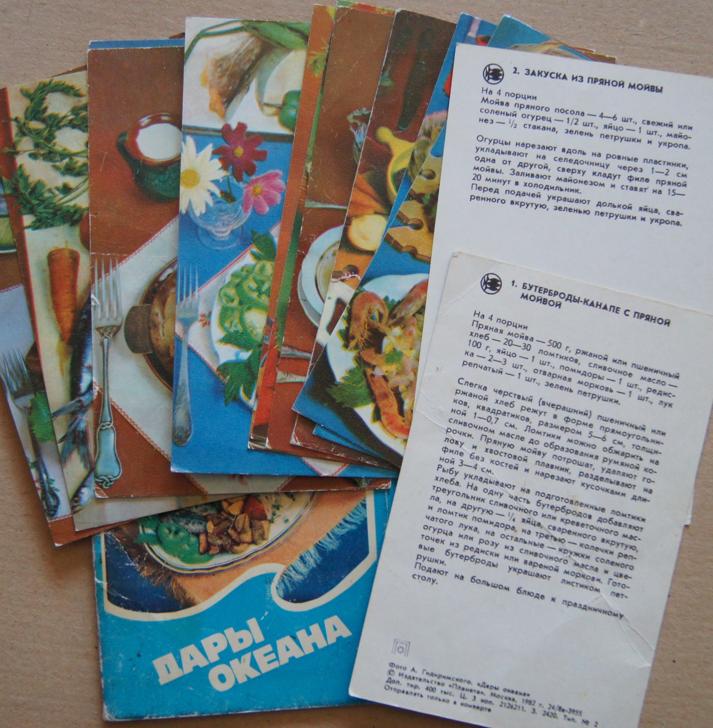 Наборы открыток времен СССР: 1. с рецептами. Кроме тех, что на фото, есть еще три набора без обложек, один из них-украинская кухня, два других, предположительно,-белорусская и прибалтийская кухни. 2. Набор с моделями одежды и выкройками на обороте, 1979г. 3. Пестрый мир аквариума, 1987г. Желательно в одни руки!!!